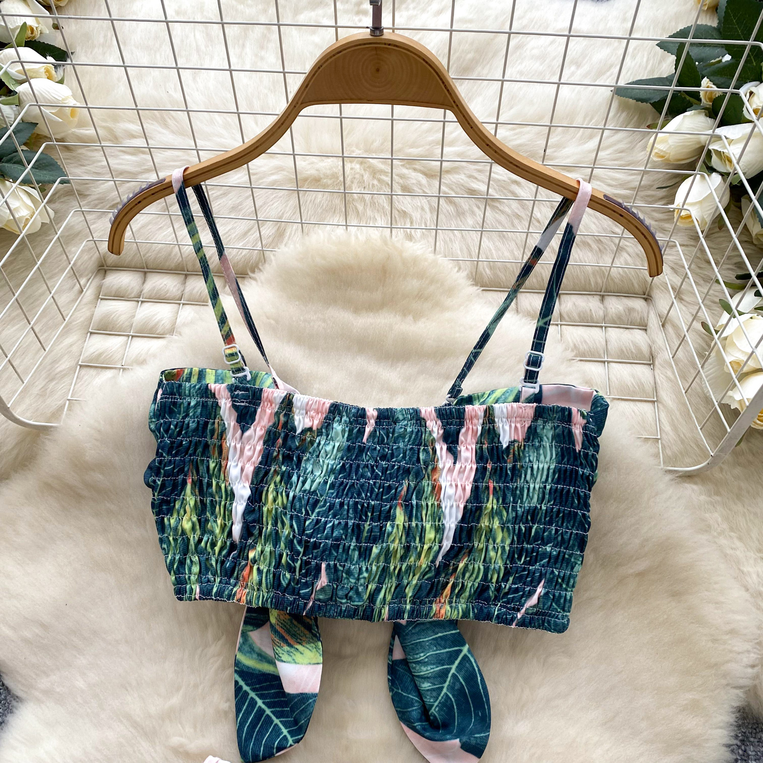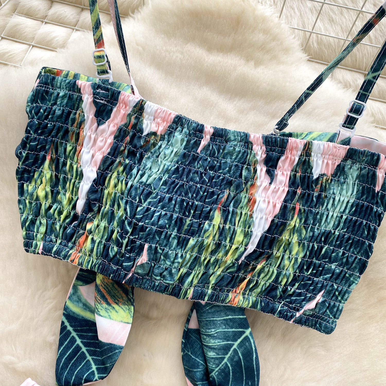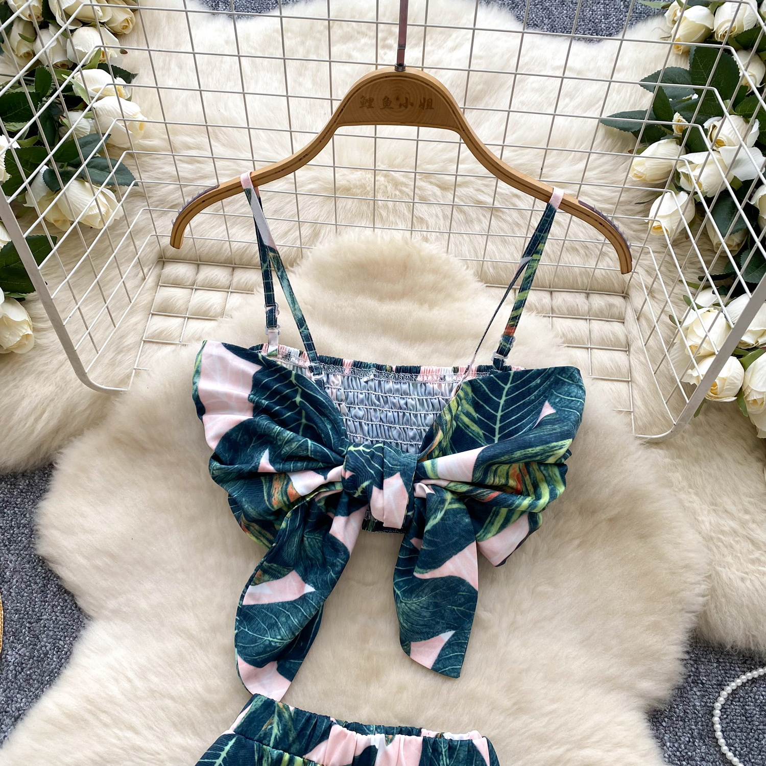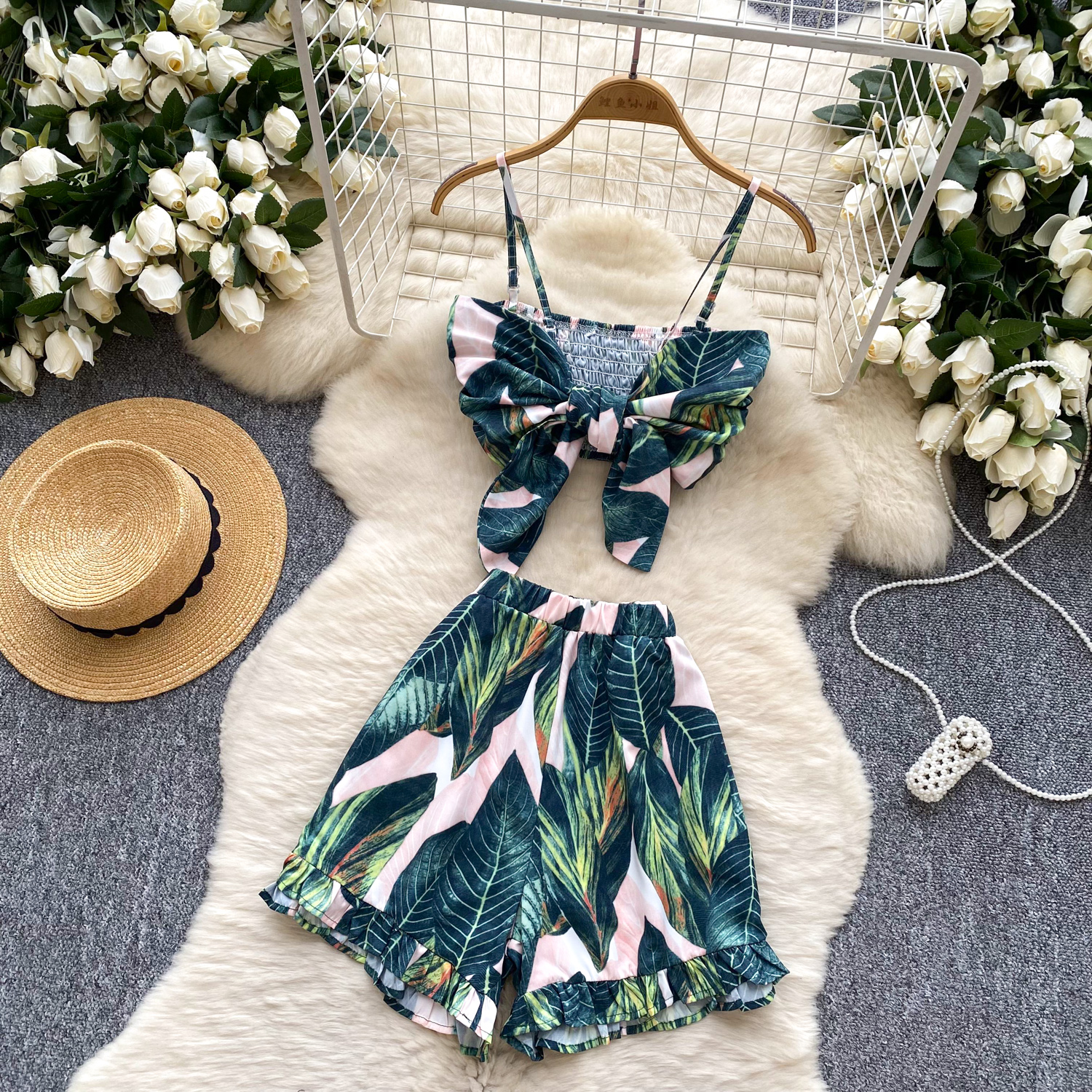 Summer Women's Casual Sets Bandage Top And High Waist Printed Shorts Set American Clothing Wholesale