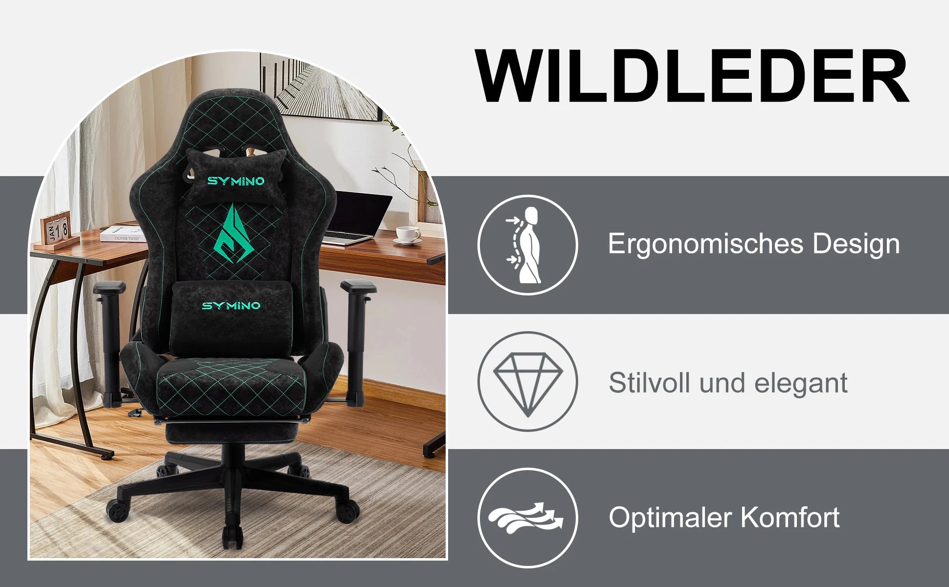 Symino Gaming-Stuhl mit Fußstütze, PC-Stuhl im Racing-Stuhl-Design, Vintage-PU-Leder, ergonomischer Bürostuhl