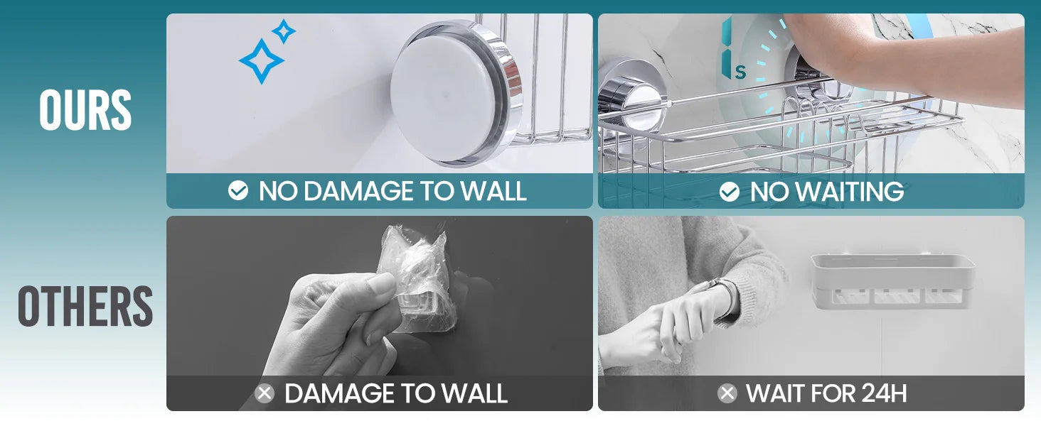 TAILI Dusch-Caddy mit Saugnapf, 2er-Pack mit Haken und Seifenhalter, robuster Badezimmer-Dusch-Organizer, ohne Bohren von Duschregalen