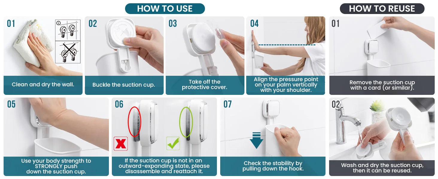 TAILI Zahnbürstenhalter mit Saugnapf für die Dusche, bohrfrei, abnehmbare Zahnpasta, selbstentleerender Rasiererhalter, Organizer für Badezimmer