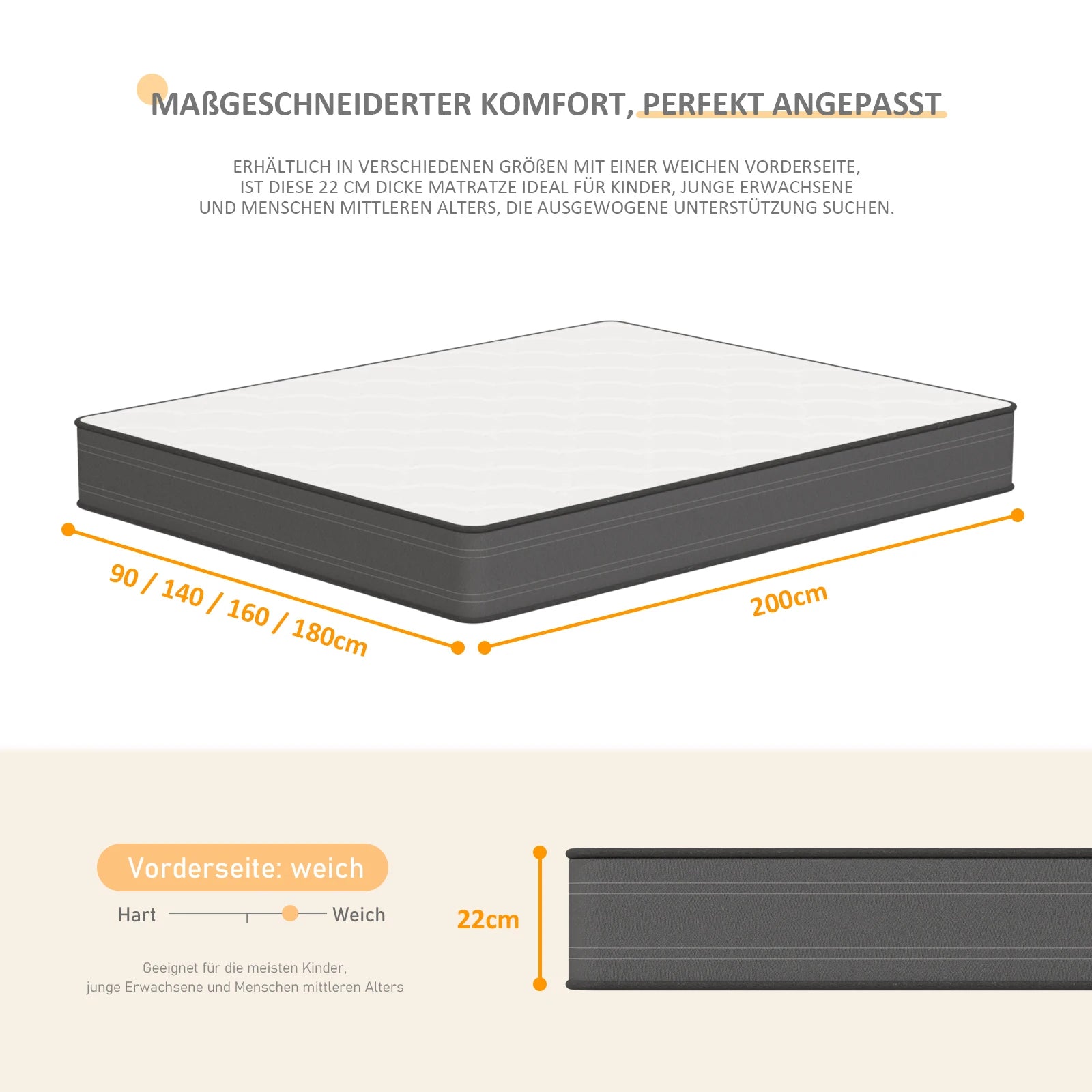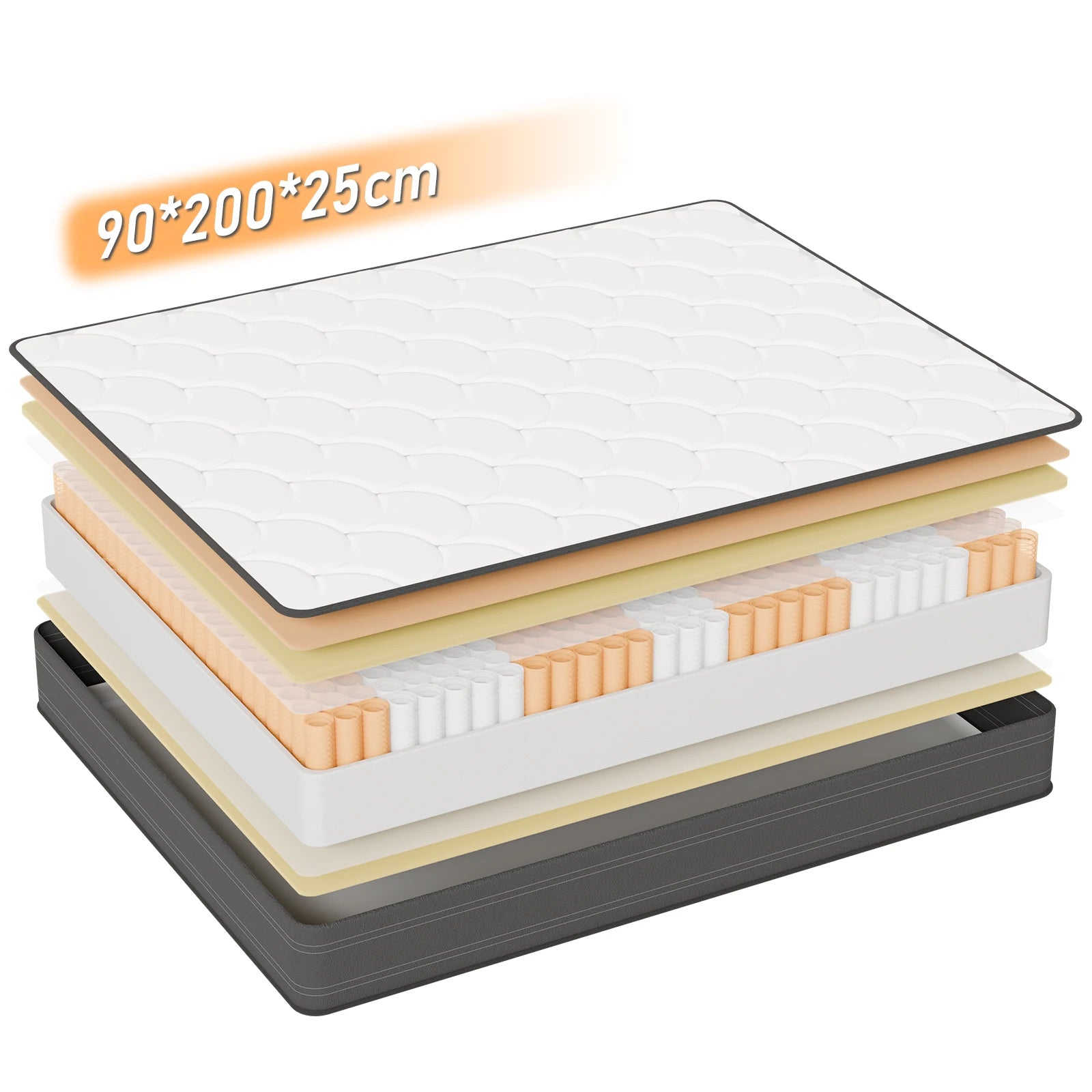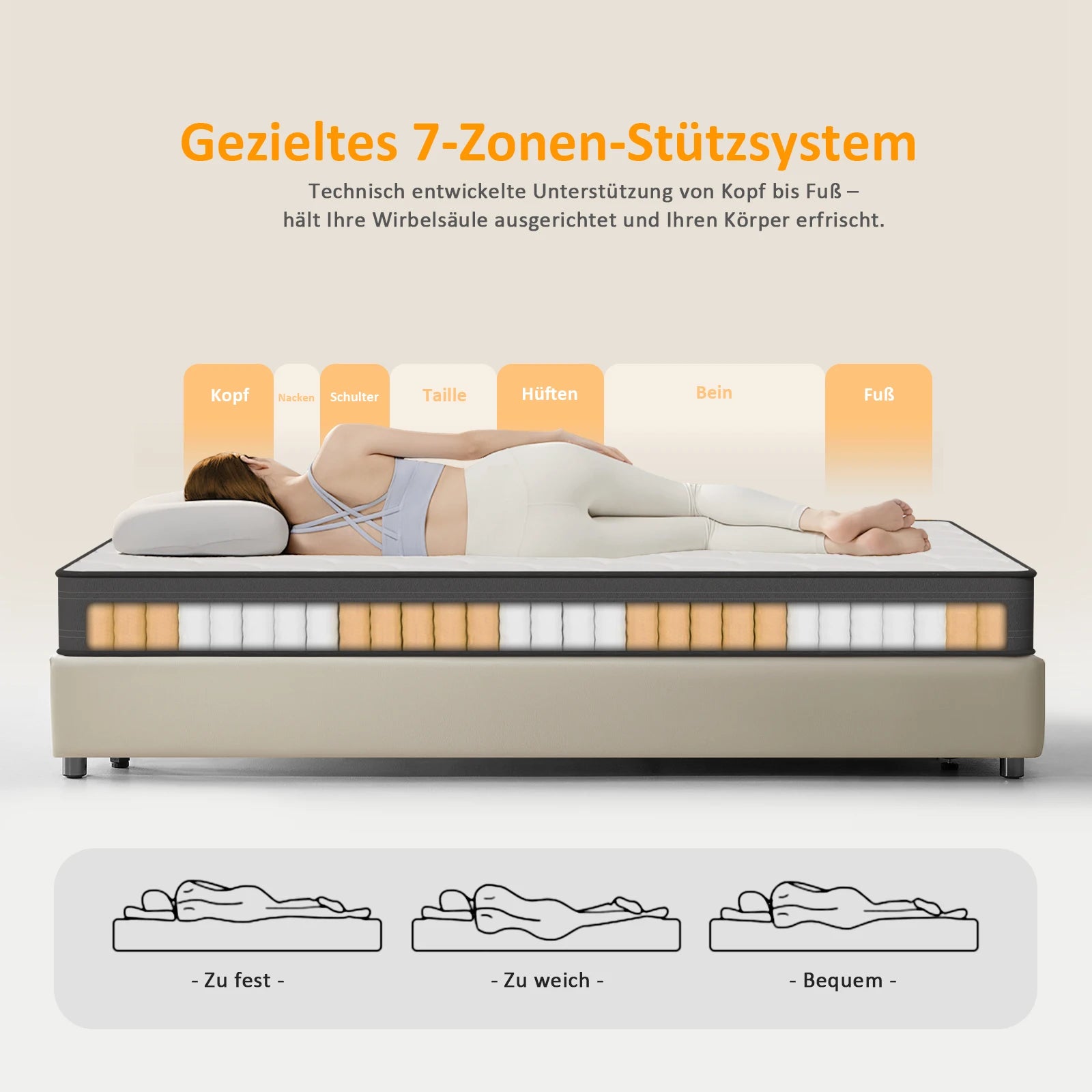 Taschenfederkernmatratze 90×200×22 cm – 7-Zonen Matratze mit Komfortschaum und stabiler Unterstützung H4