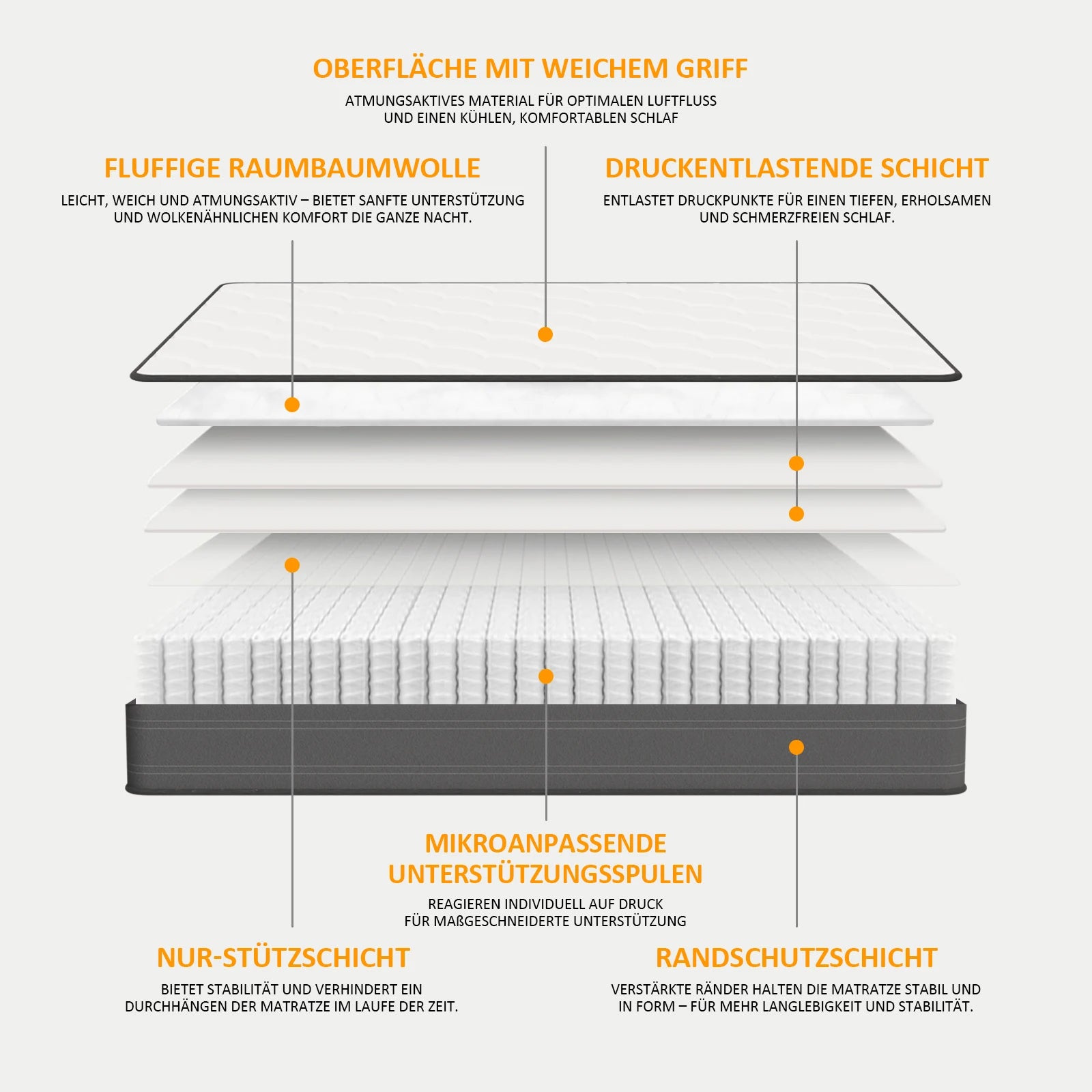 Matratze Füllung: Memory Foam,Taschenfeder,Schwamm