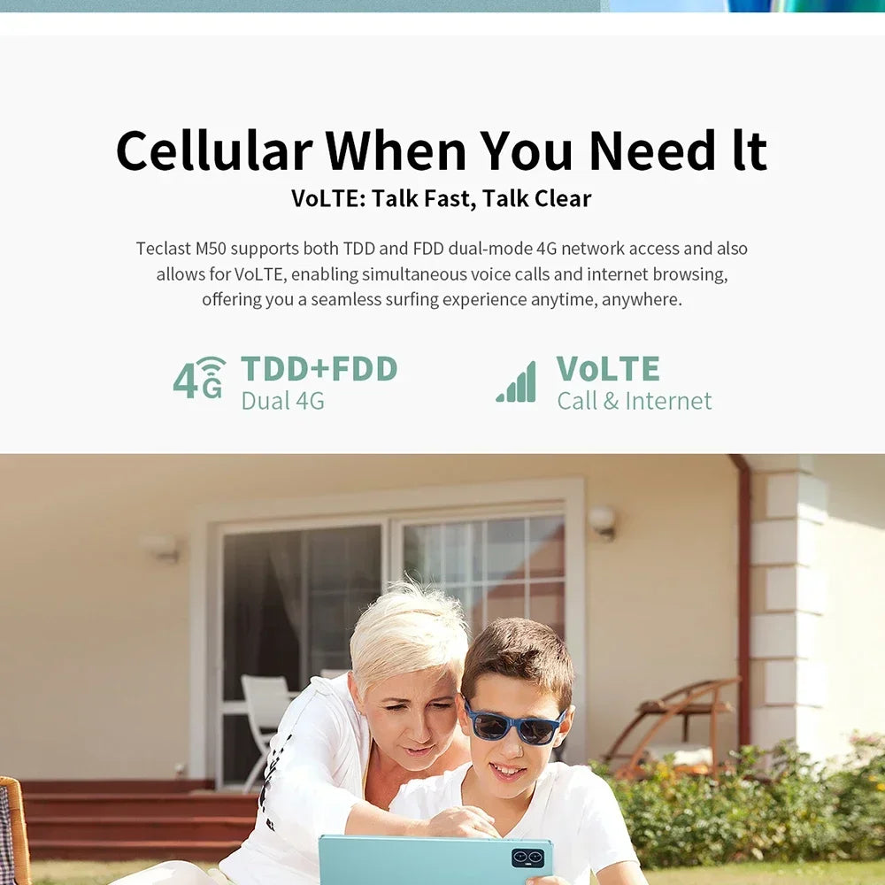 Teclast M50 Tablet 6GB RAM 128GB ROM Unisoc T606 Octa-core 10.1inch TDDI Android 14 WiFi BT5.0 6000mAh Type-C Tablet Case