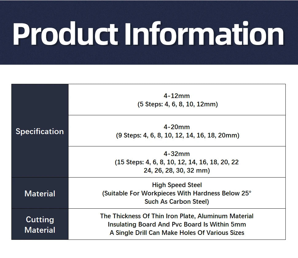TOOLEYE HSS Titan Stufenbohrer Bühnenbohrer für Metall Holz Hochgeschwindigkeits-Stufenbohrer-Set Elektrowerkzeuge 3-12 4-12 4-20 4-32 mm