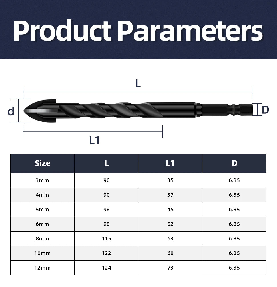 TOOLEYE Kreuz Hex Bohrer Set Für Beton Porzellan Fliesen Glas Metall Multifunktions Bohrer Bits Kit Power Werkzeuge Bohren Bohrer