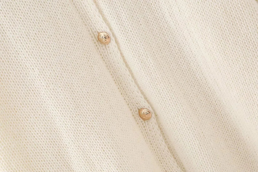TRAF Women's Bat Sleeve Cardigan Sweater Temperament Lapel Metal Button Decoration Fashion Jacket Casual Commuter Women's Tops