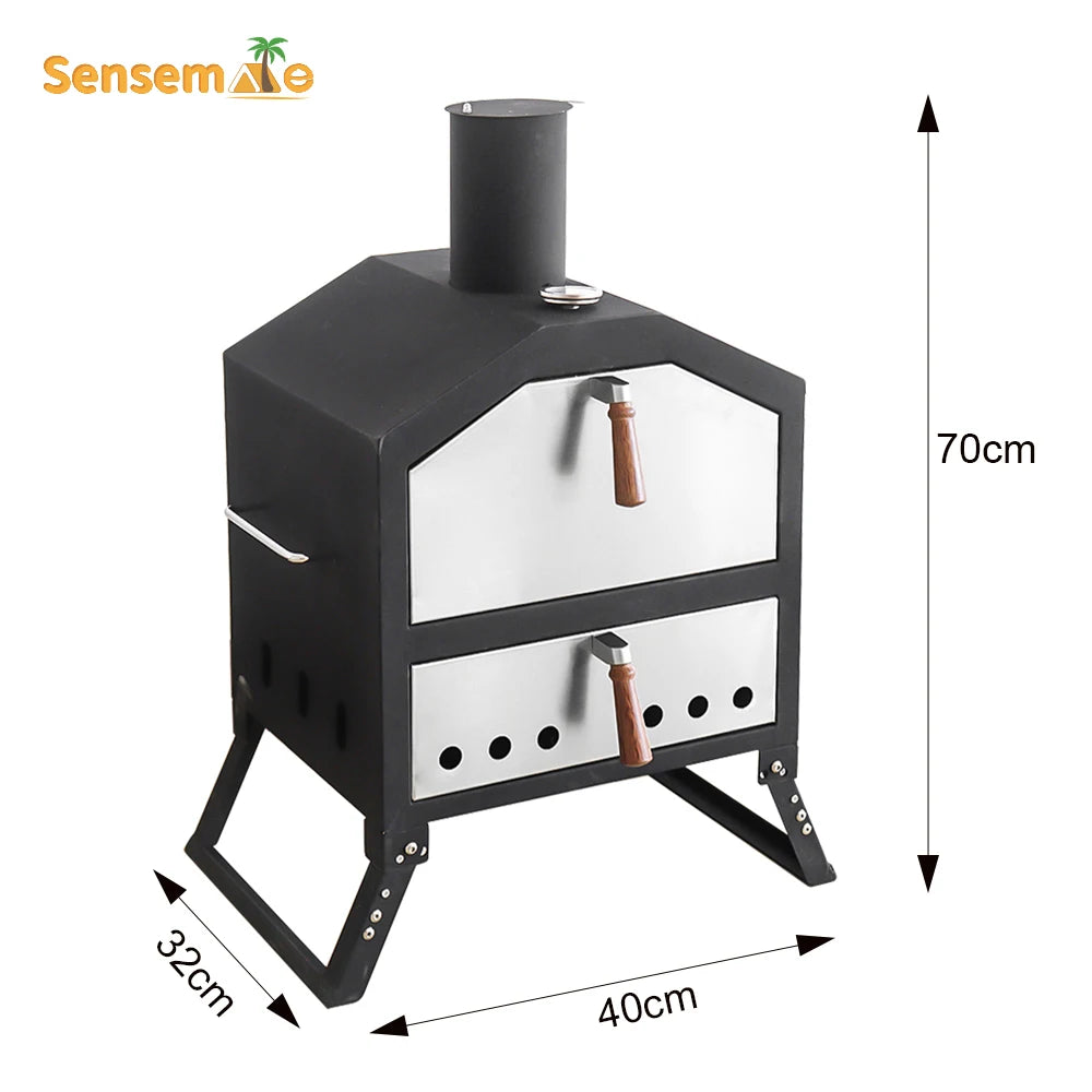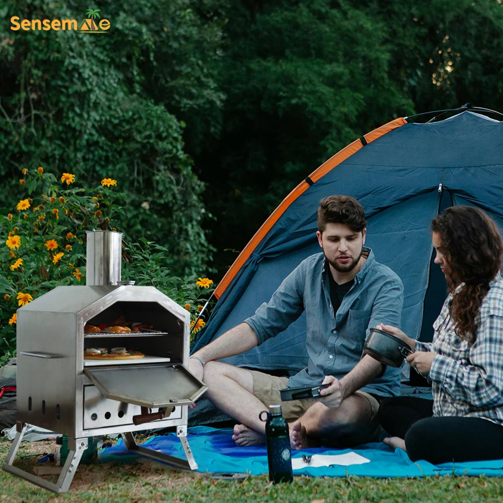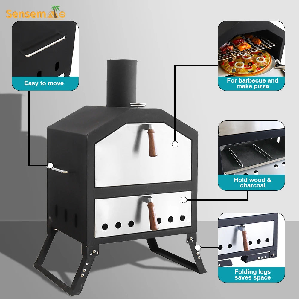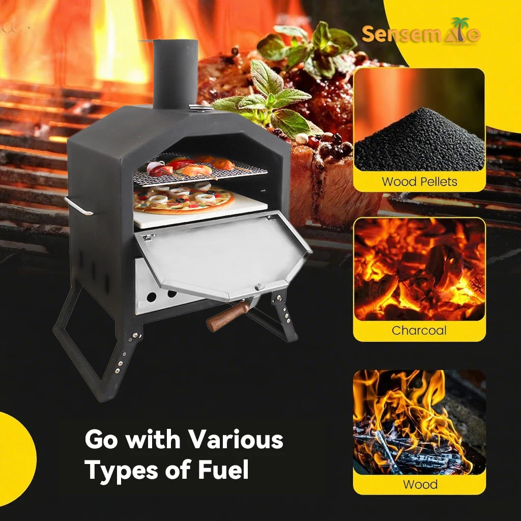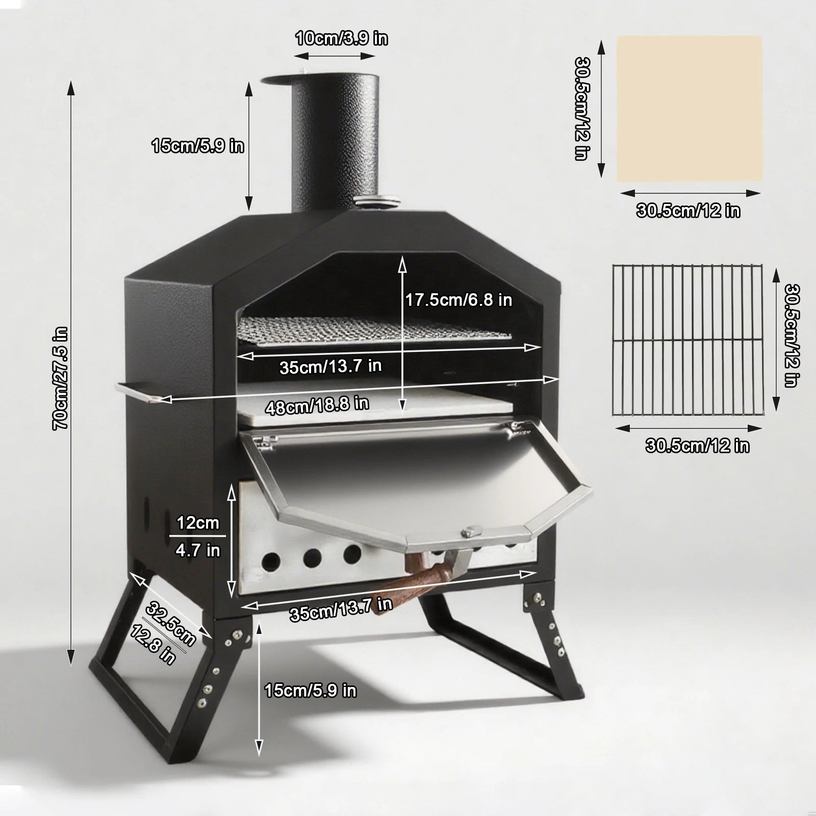Tragbarer, holzgefeuerter Pizzaofen für den Außenbereich mit 12-Zoll-Stein und Thermometer, klappbare Beine, Camping-Grillmaschine aus Edelstahl für den Hinterhof