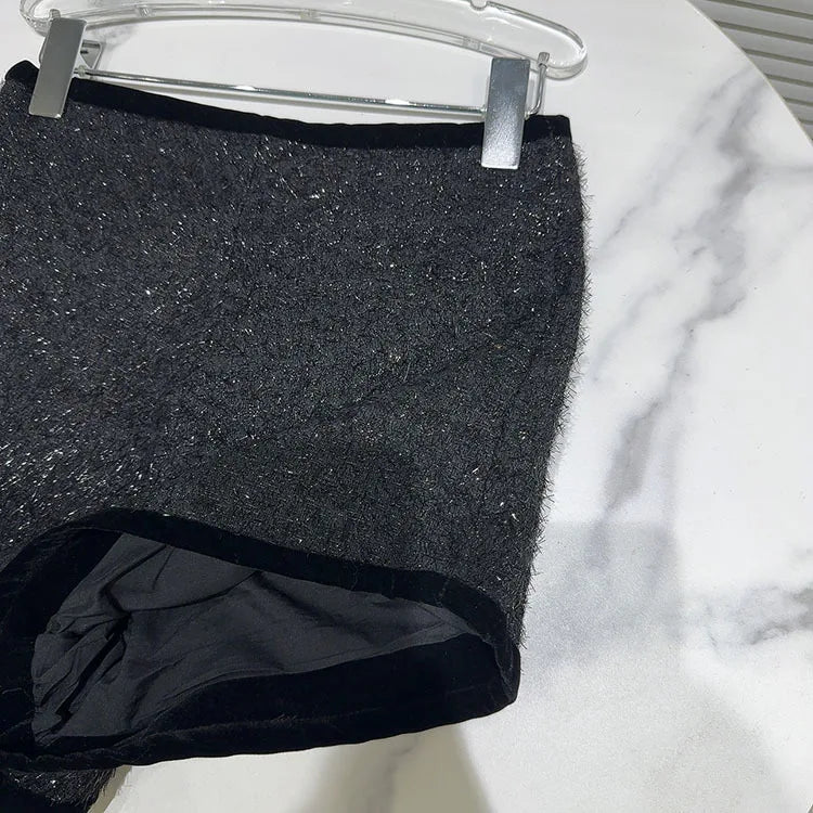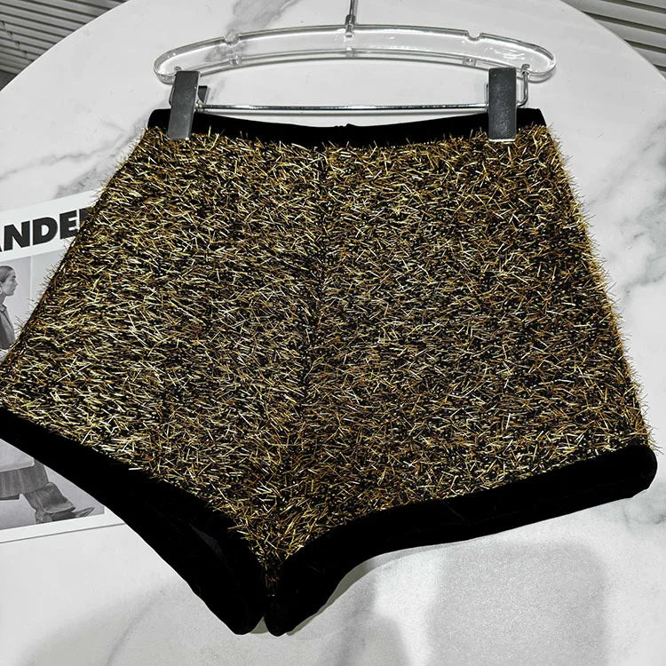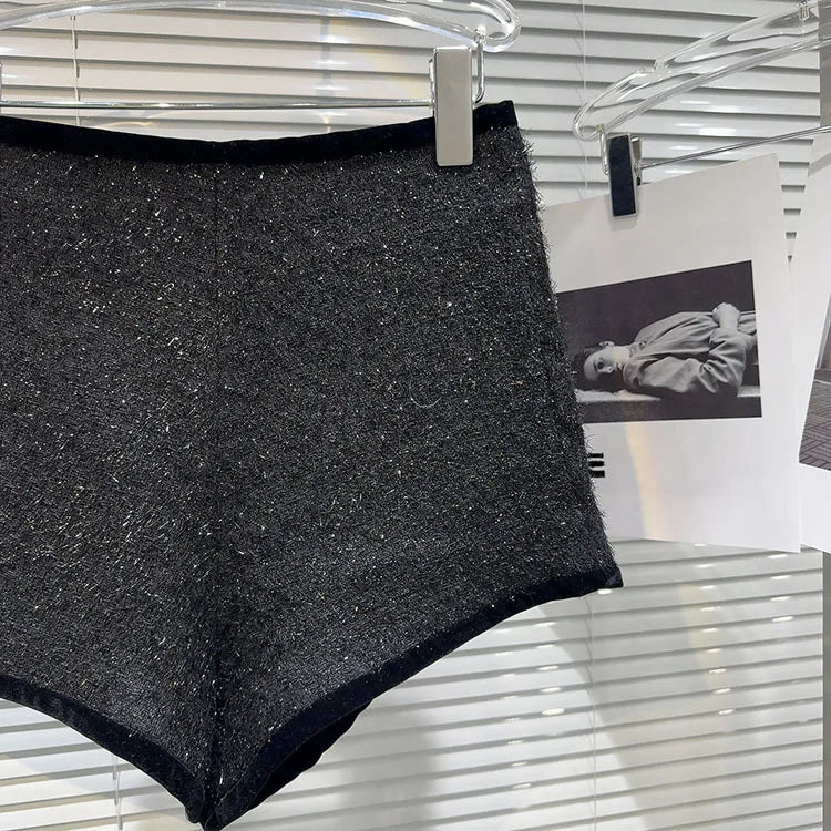 Trendy Women's Solid Color Bright Silk Woolen Shorts 2024 Autumn Fashion New Items High Waist Short Pants Female