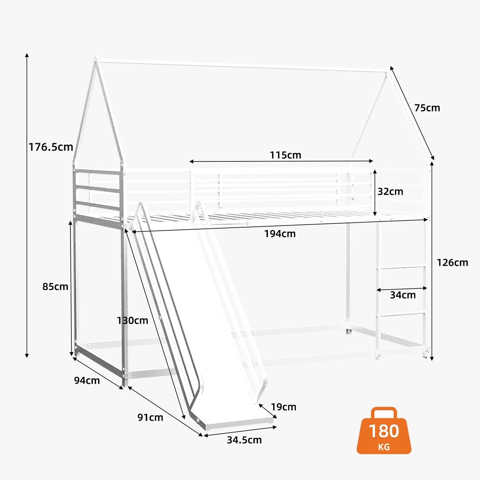 Twin Over Twin Etagenbett mit Rutsche für Kinderzimmer, hausförmiges Bettgestell mit Leiter, kein Boxspringbett erforderlich und einfach zu installieren