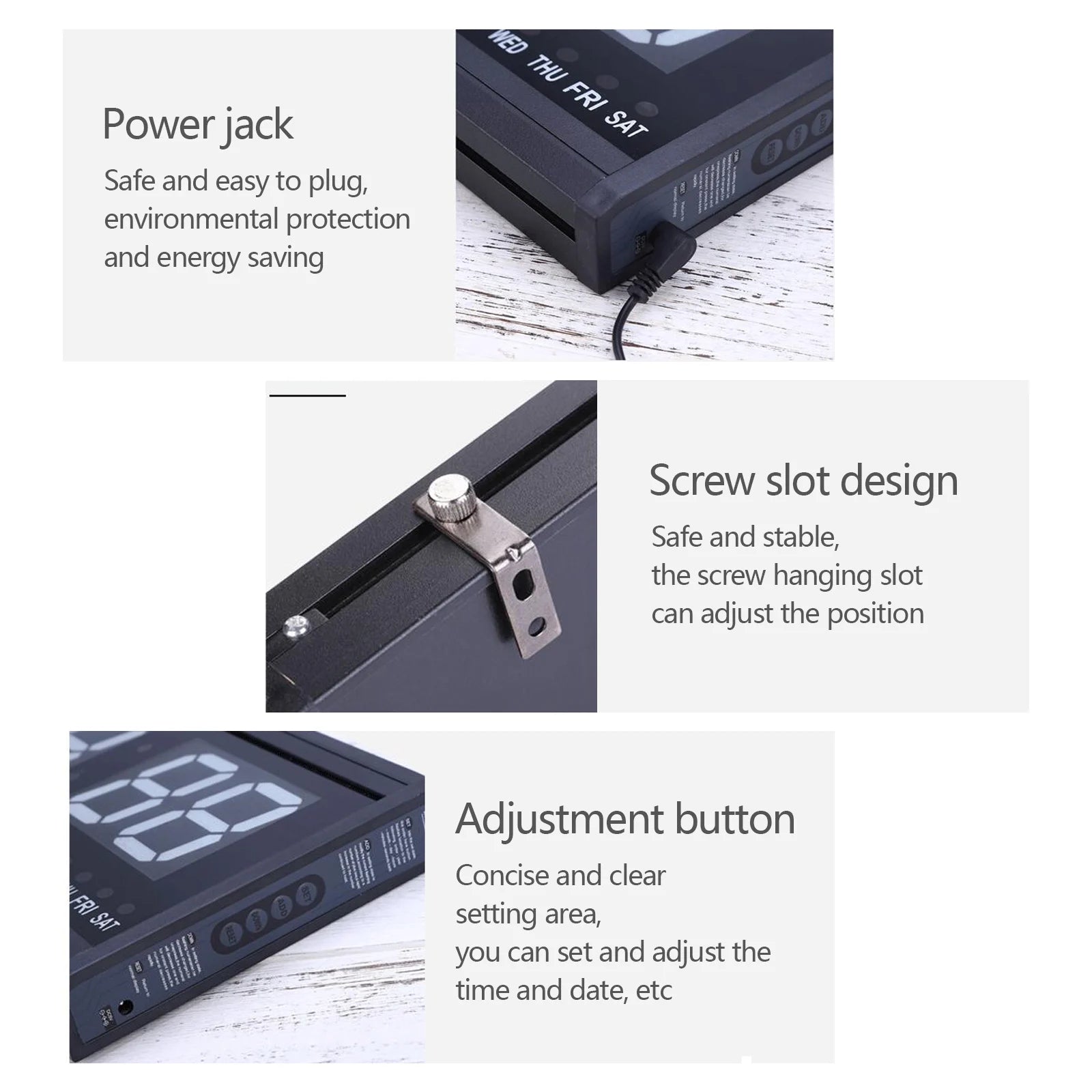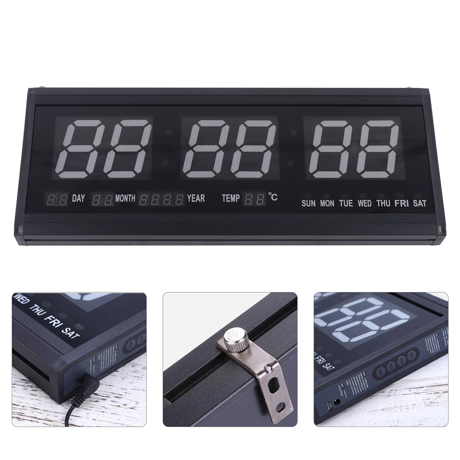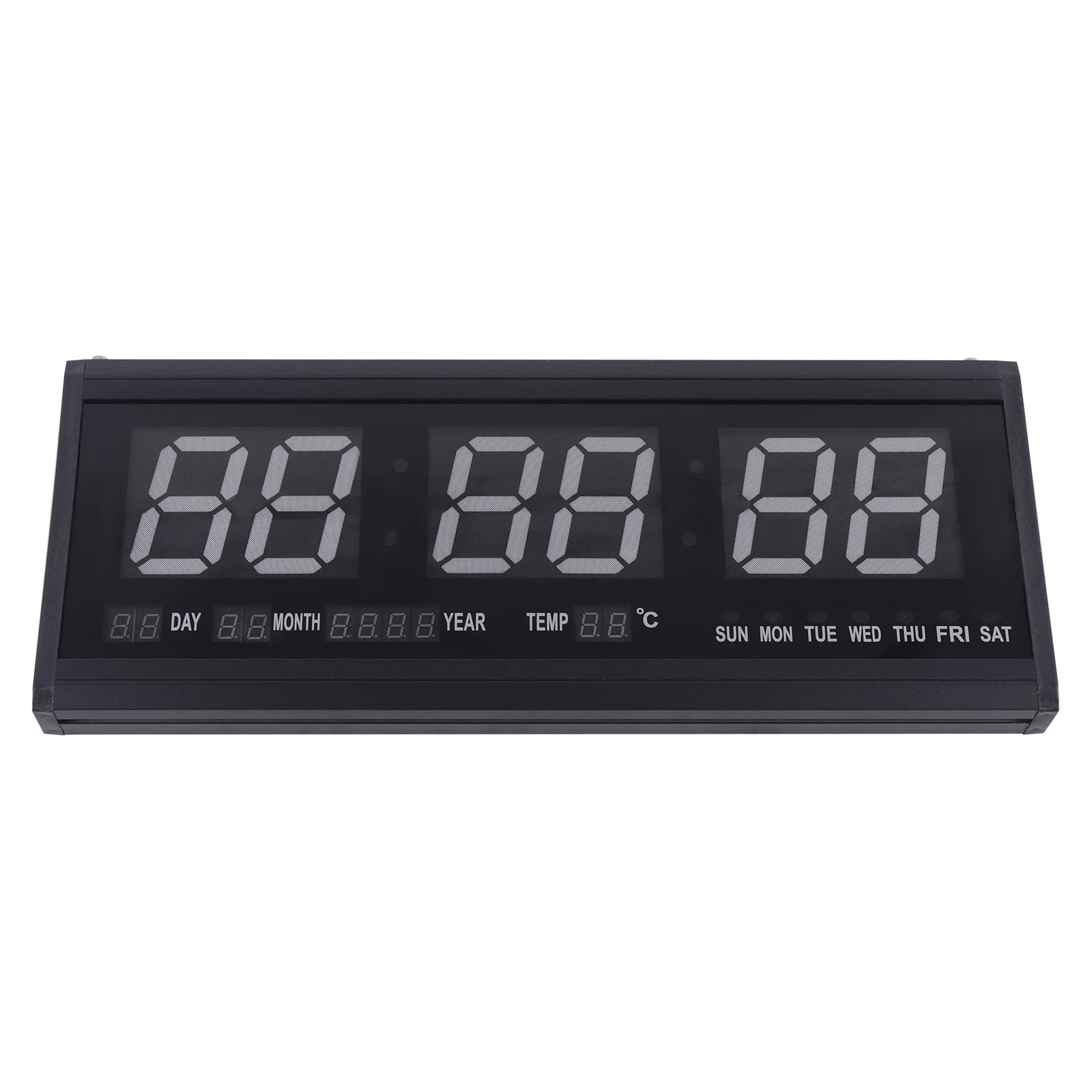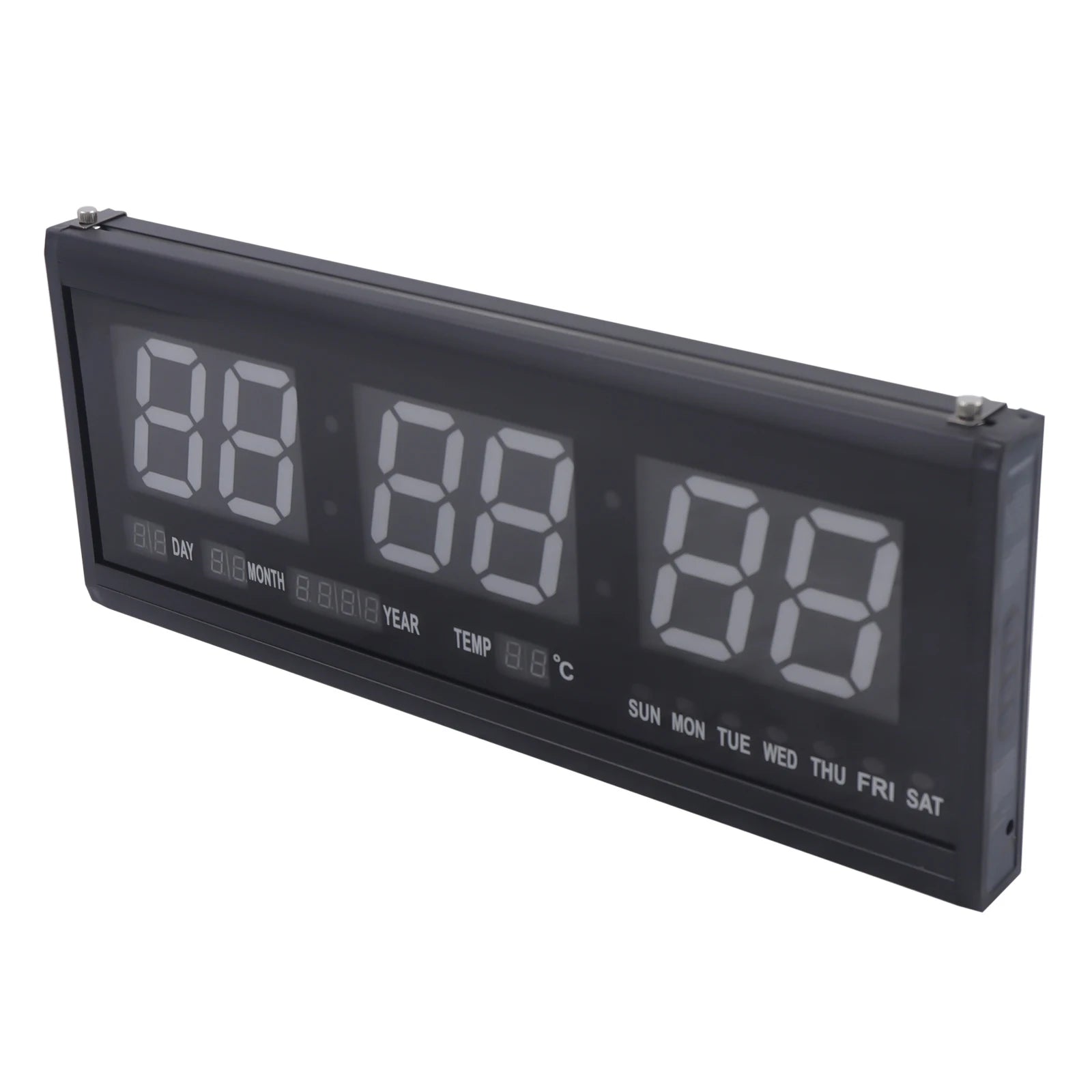 Übergroße digitale LED-Wanduhr – steckbar, automatischer Dimmer, großer Kalender und Thermometer (blau schwarz)