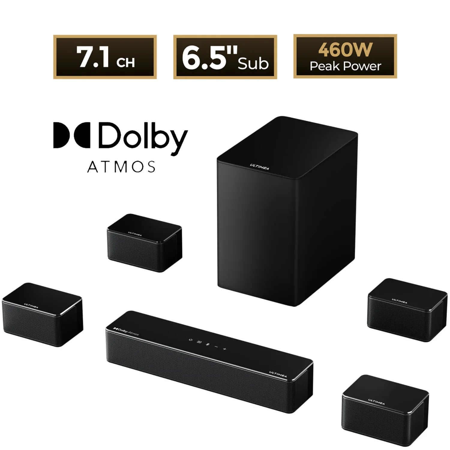 ULTIMEA 7.1Ch Soundbar with Dolby Atmos, APP Control, Surround Sound System for TV, 4 Wired Surround Speakers, Sound Bar for TV