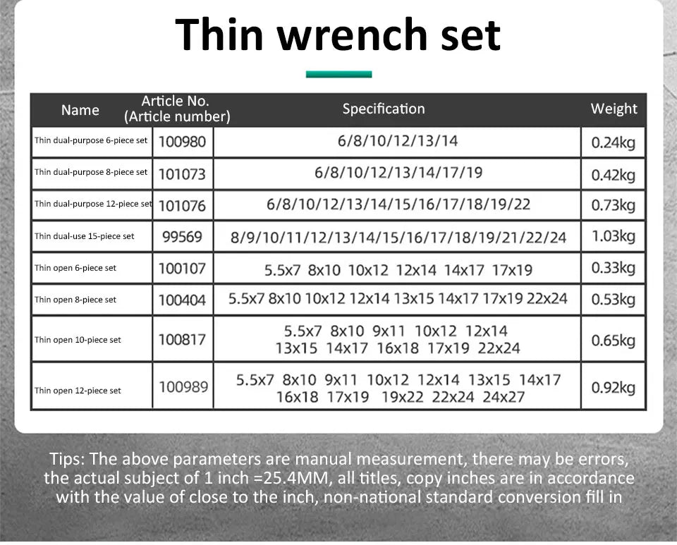 Ultradünner Schraubenschlüssel-Satz mit offenem Ende, 6–27 mm, Pflaumenschlüssel-Kombination, universelles Ratschenschlüssel-Set mit zwei Köpfen, Auto-Reparaturwerkzeuge