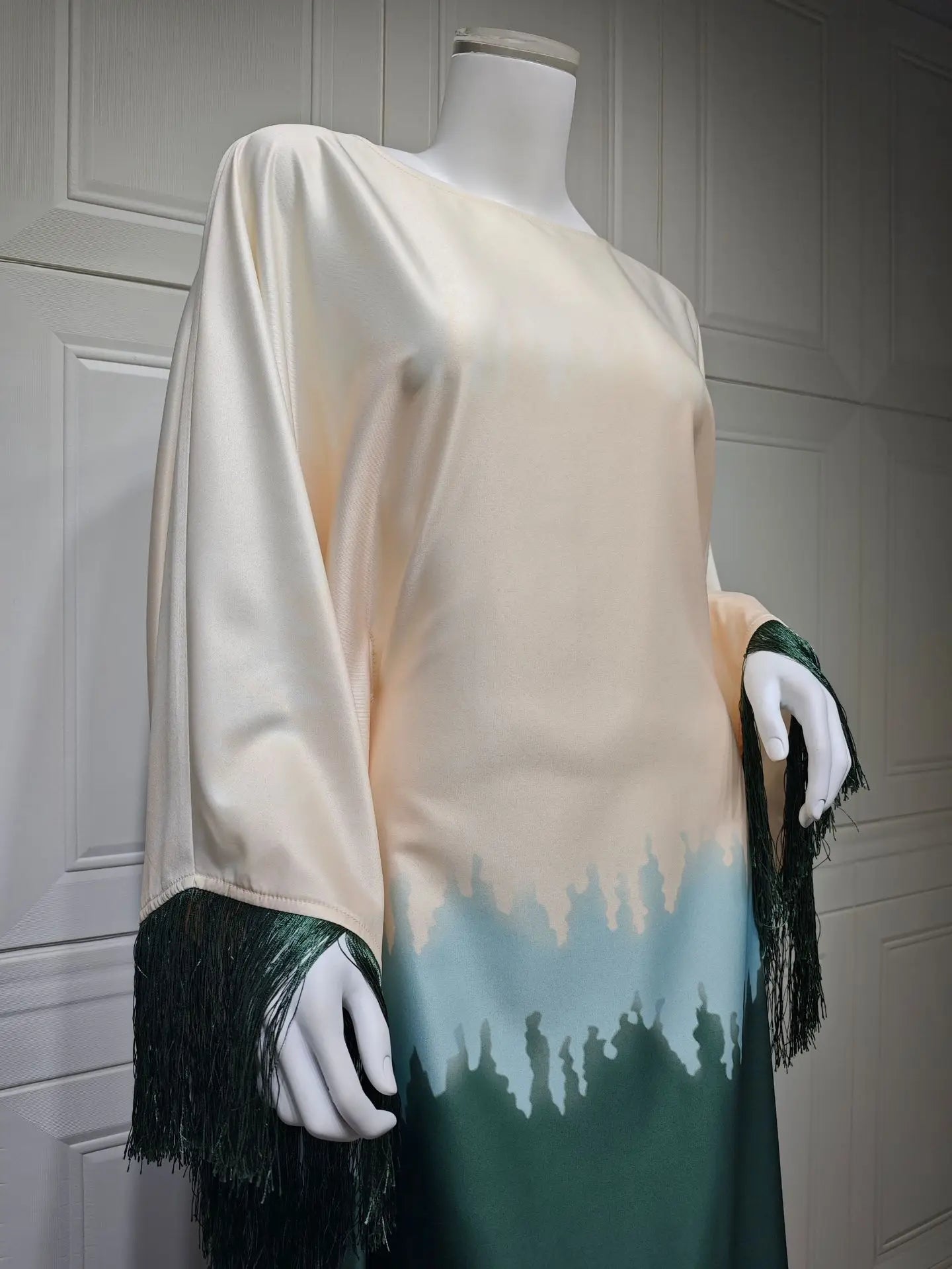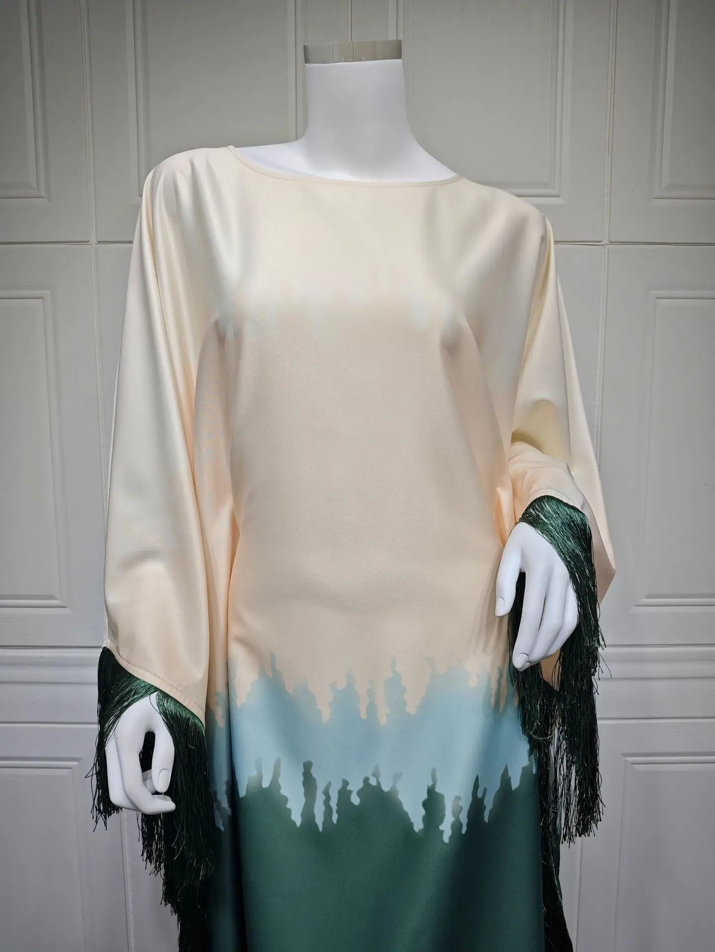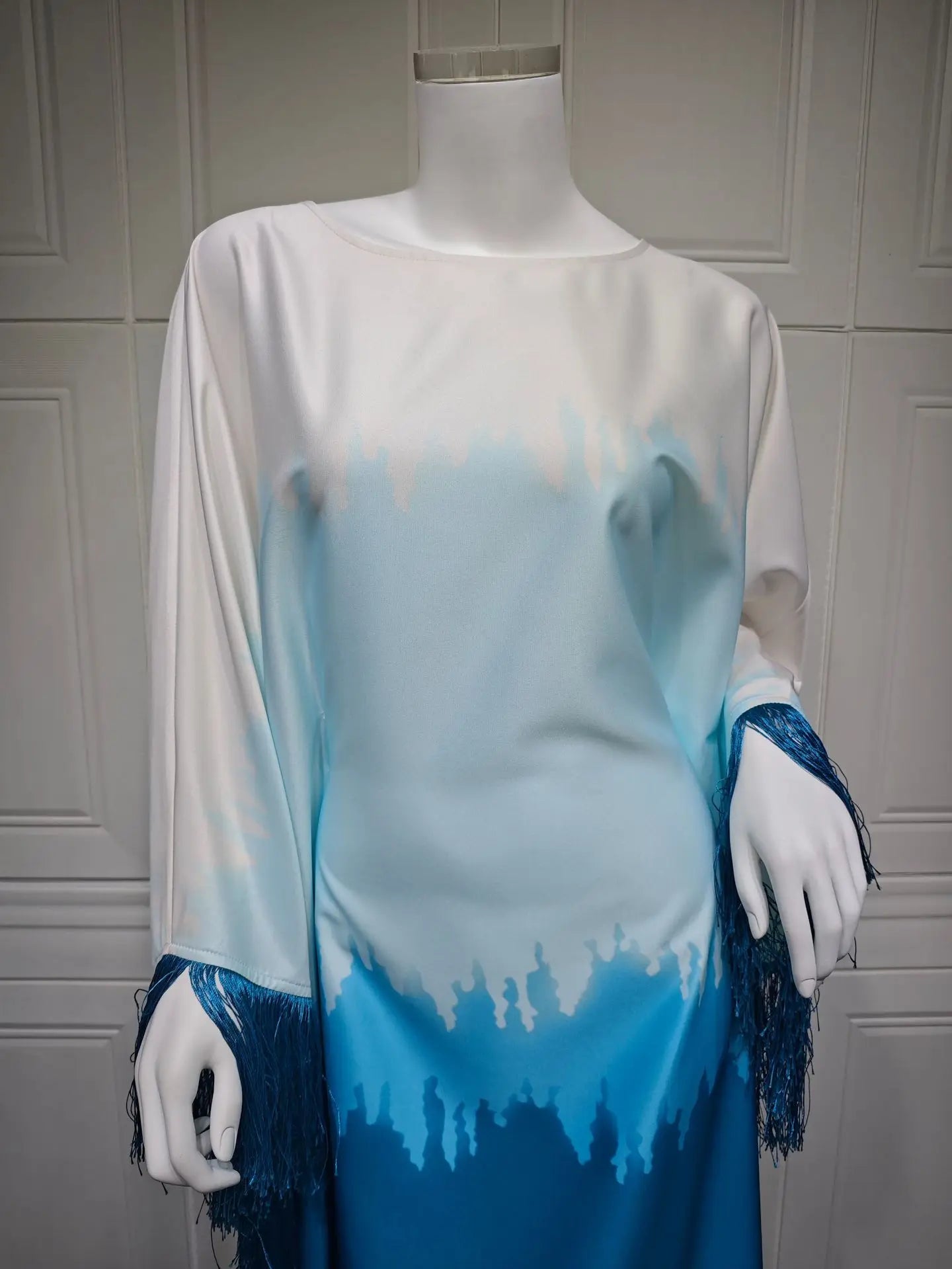 Uni Tassel Gradient Dubai Muslim Abaya For Woman O-Neck Elegant Casual Loose Moroccan Saudi Kebaya Fashion Party Dress 2025