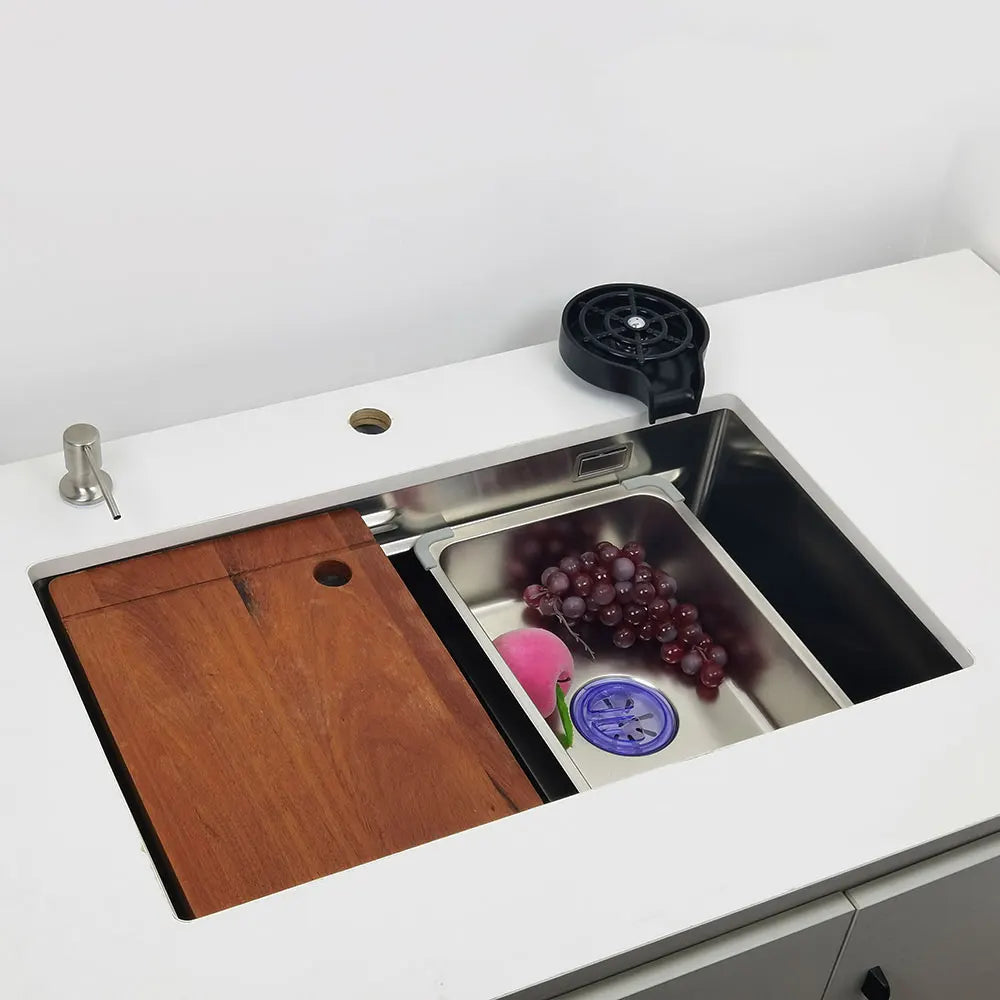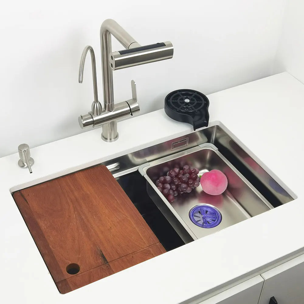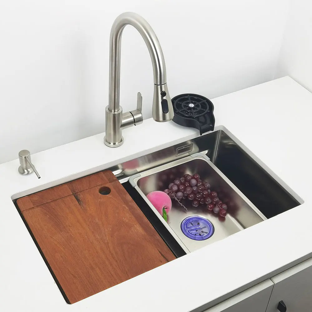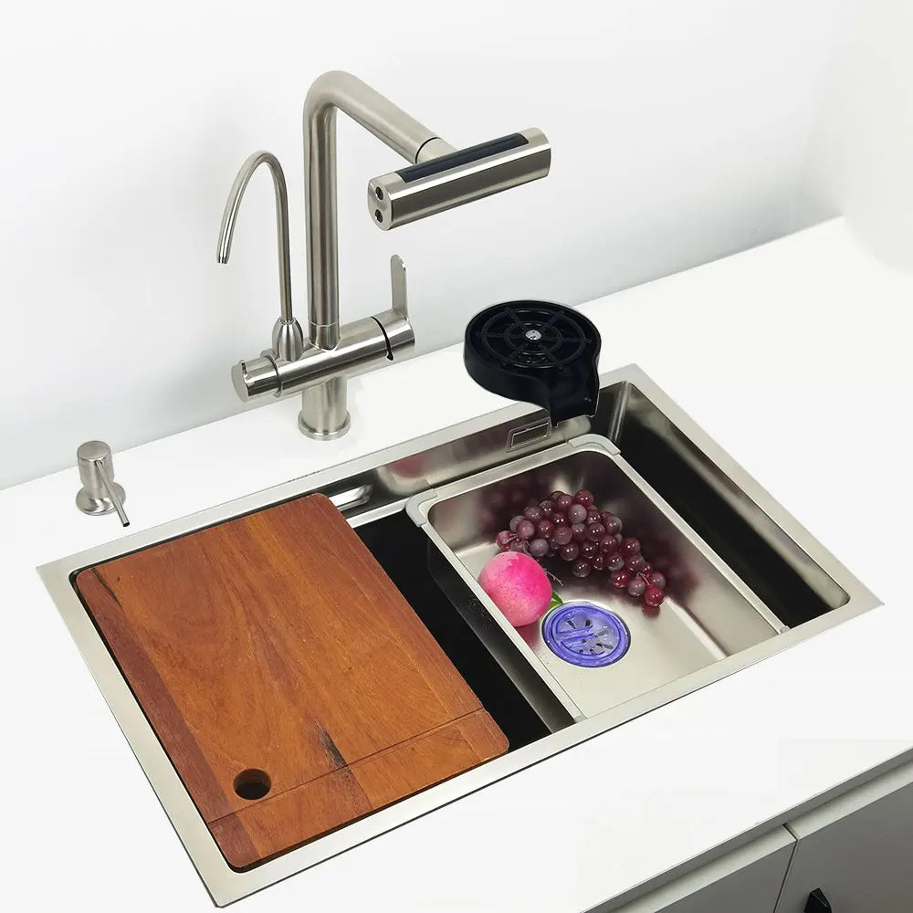 Unterbau-Küchenspüle aus Edelstahl 304, obermontierte Waschbecken mit Wasserfall-Wasserhahn, multifunktionales Einzelwaschbecken