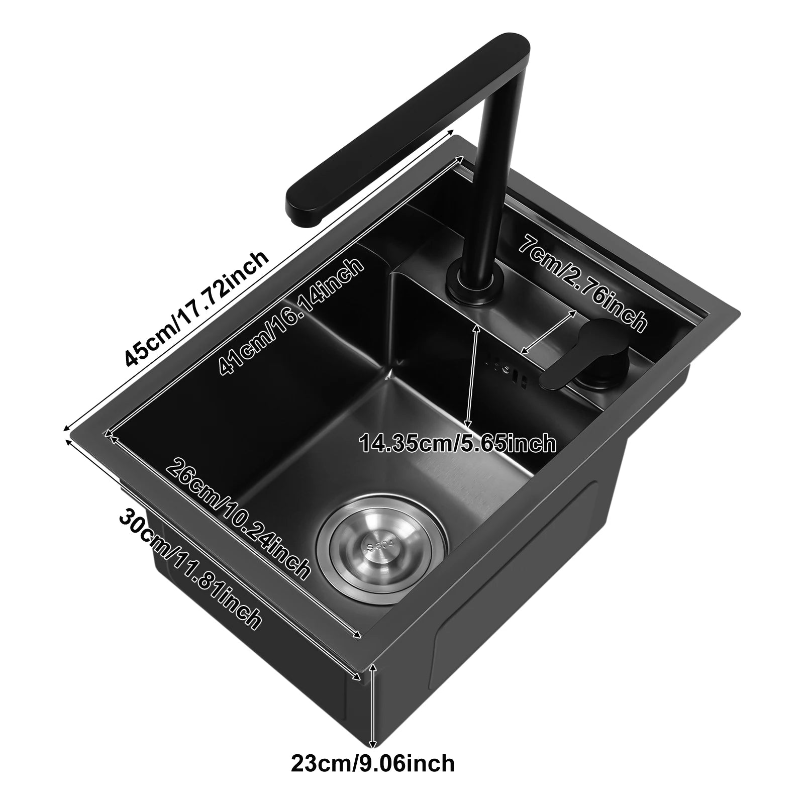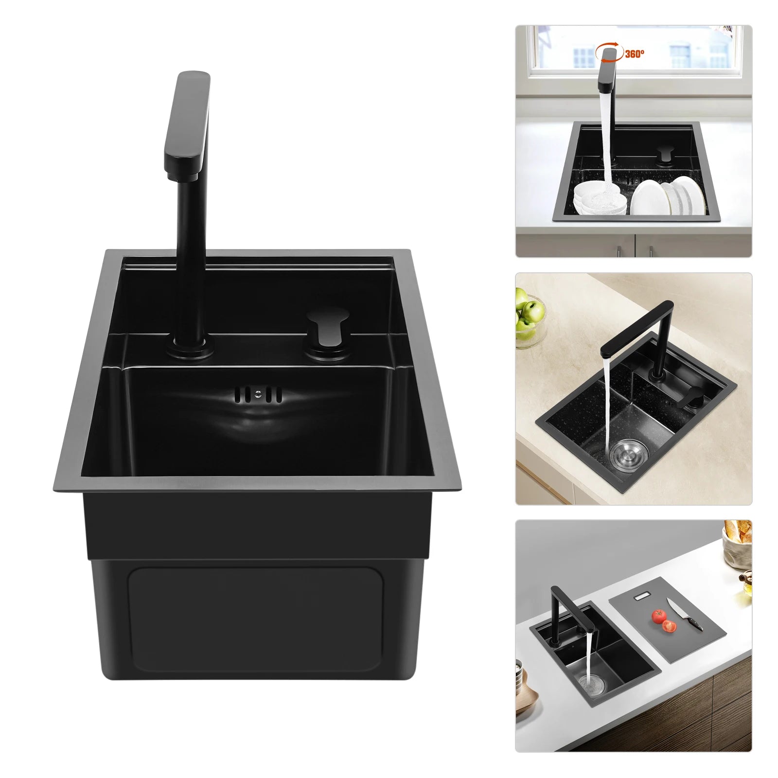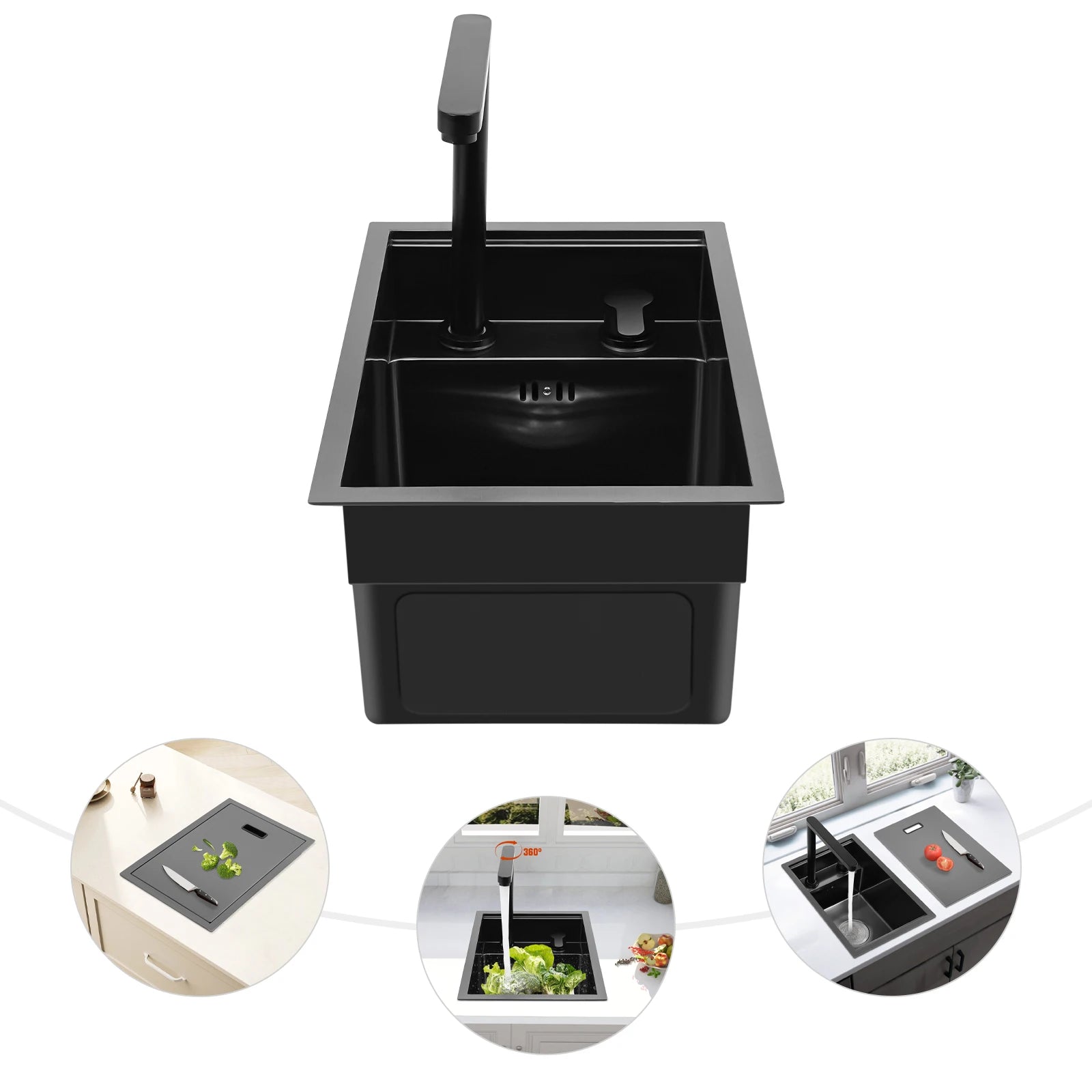 Verstecktes Küchenspüle, schwarz eingebettetes Arbeitsplattenwaschbecken, unsichtbares Waschbecken für die Küche, Bar, platzsparendes, verstecktes Badezimmerwaschbecken für Küchen