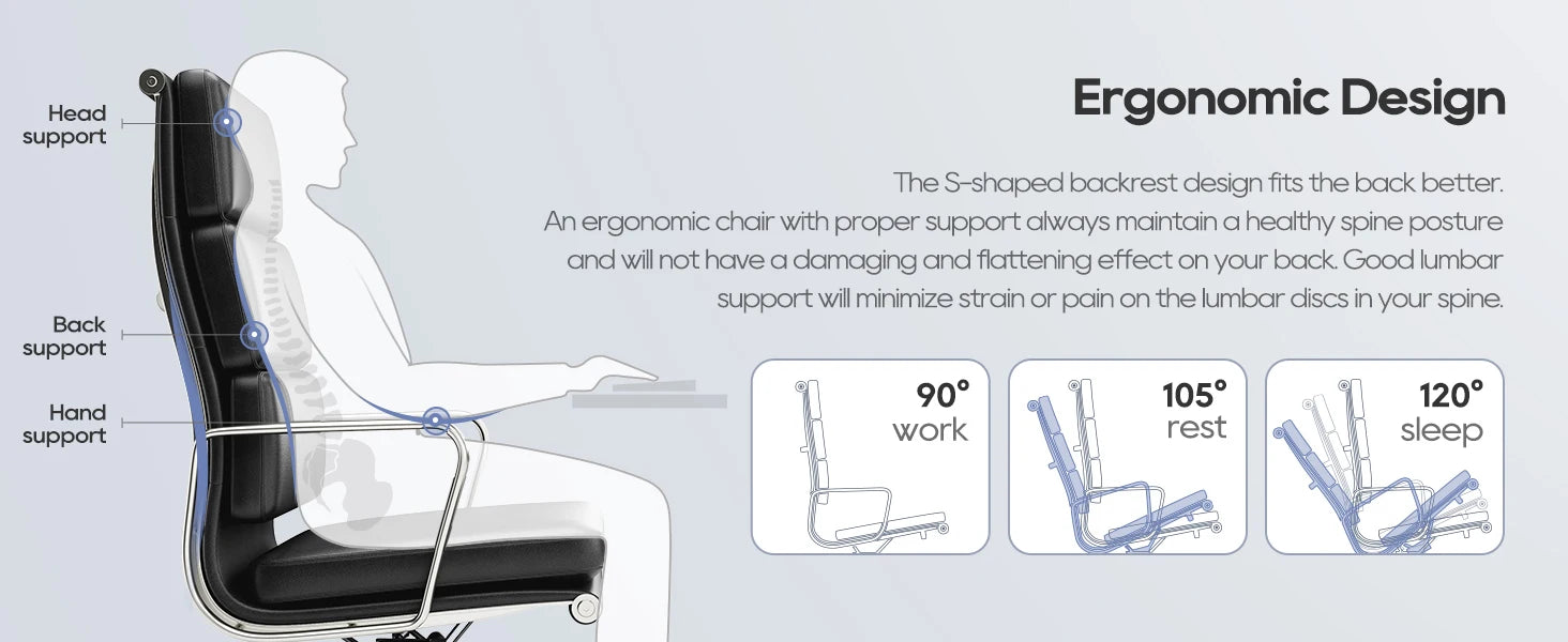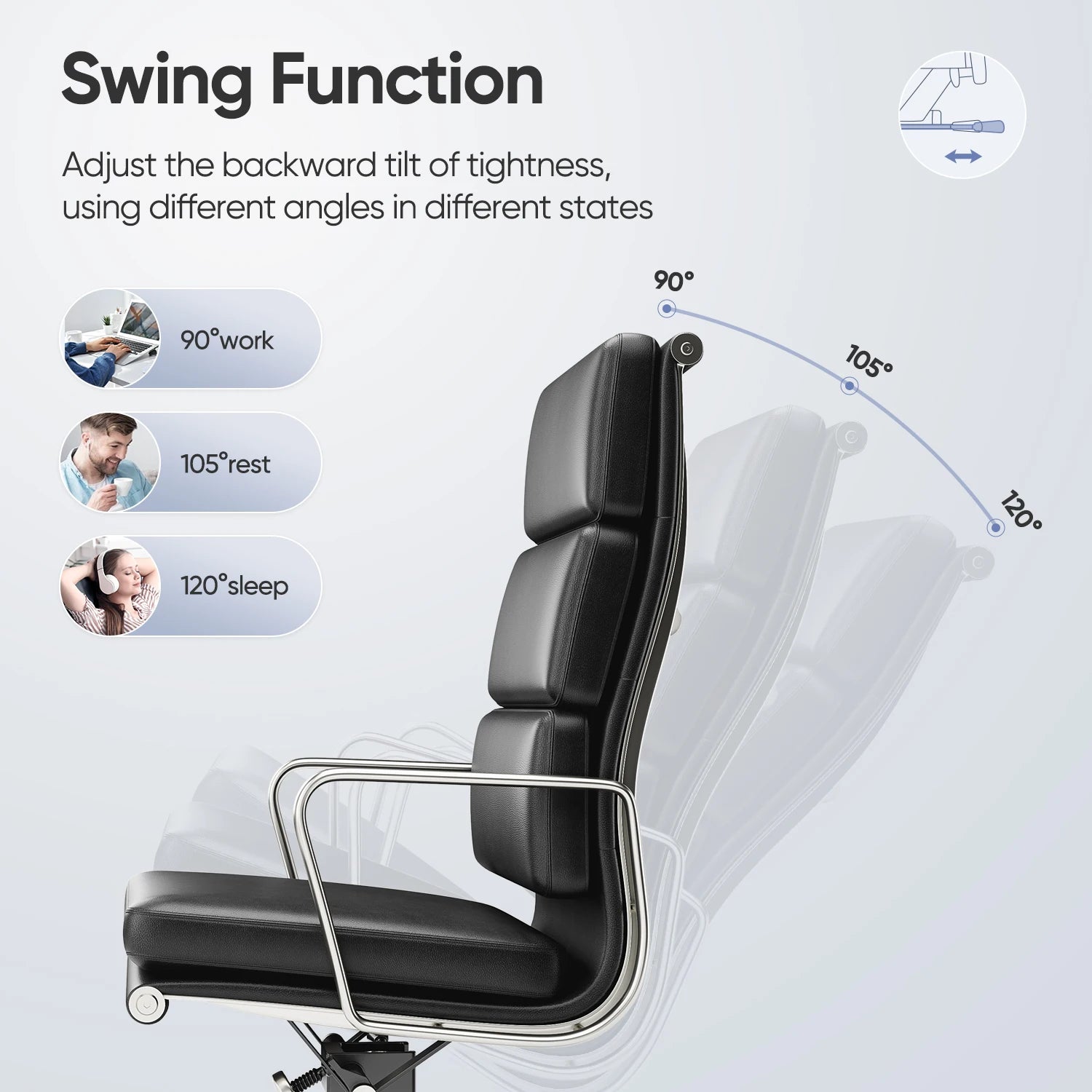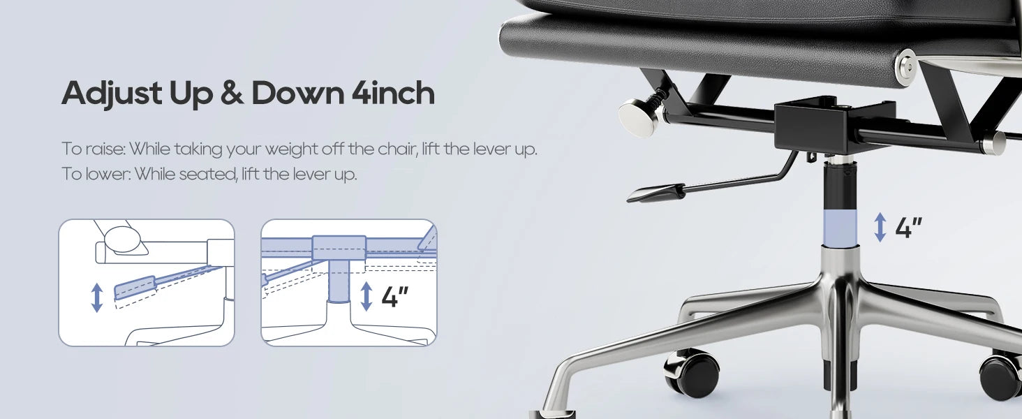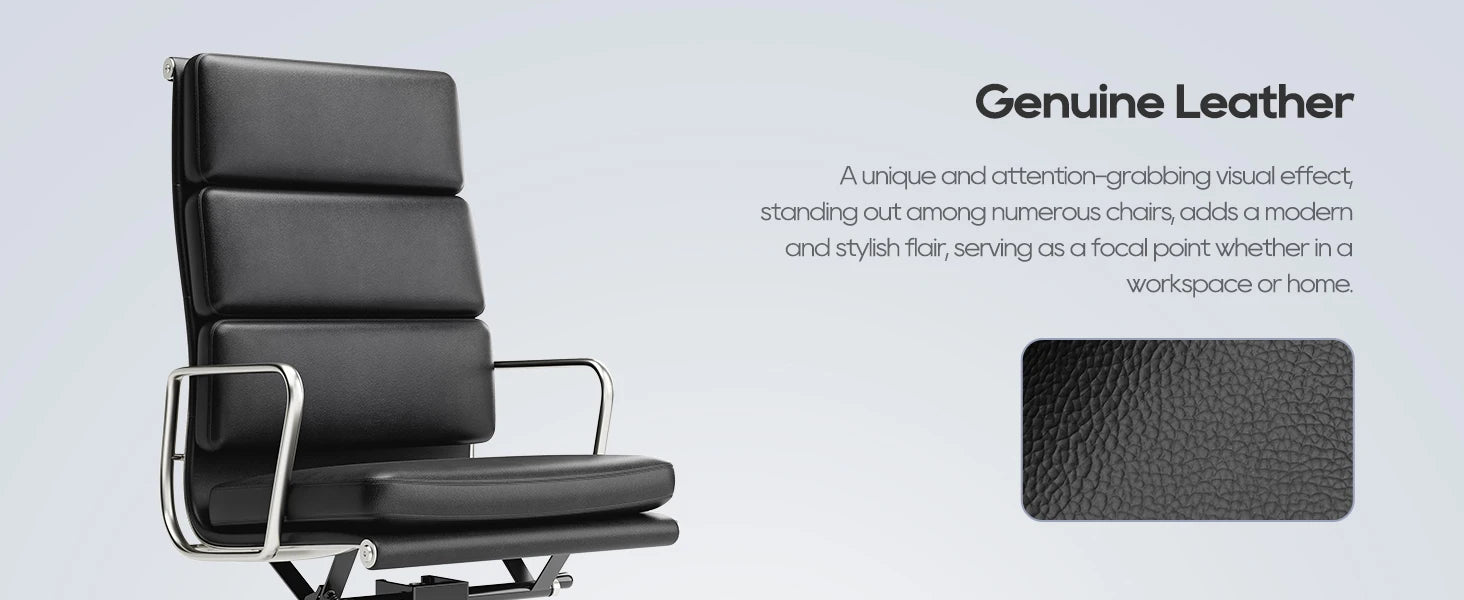 Verstellbarer Bürostuhl aus echtem Leder mit Lordosenstütze, Legierungsarmbasis, Chefsessel, ergonomische Schreibtisch-Computerstühle