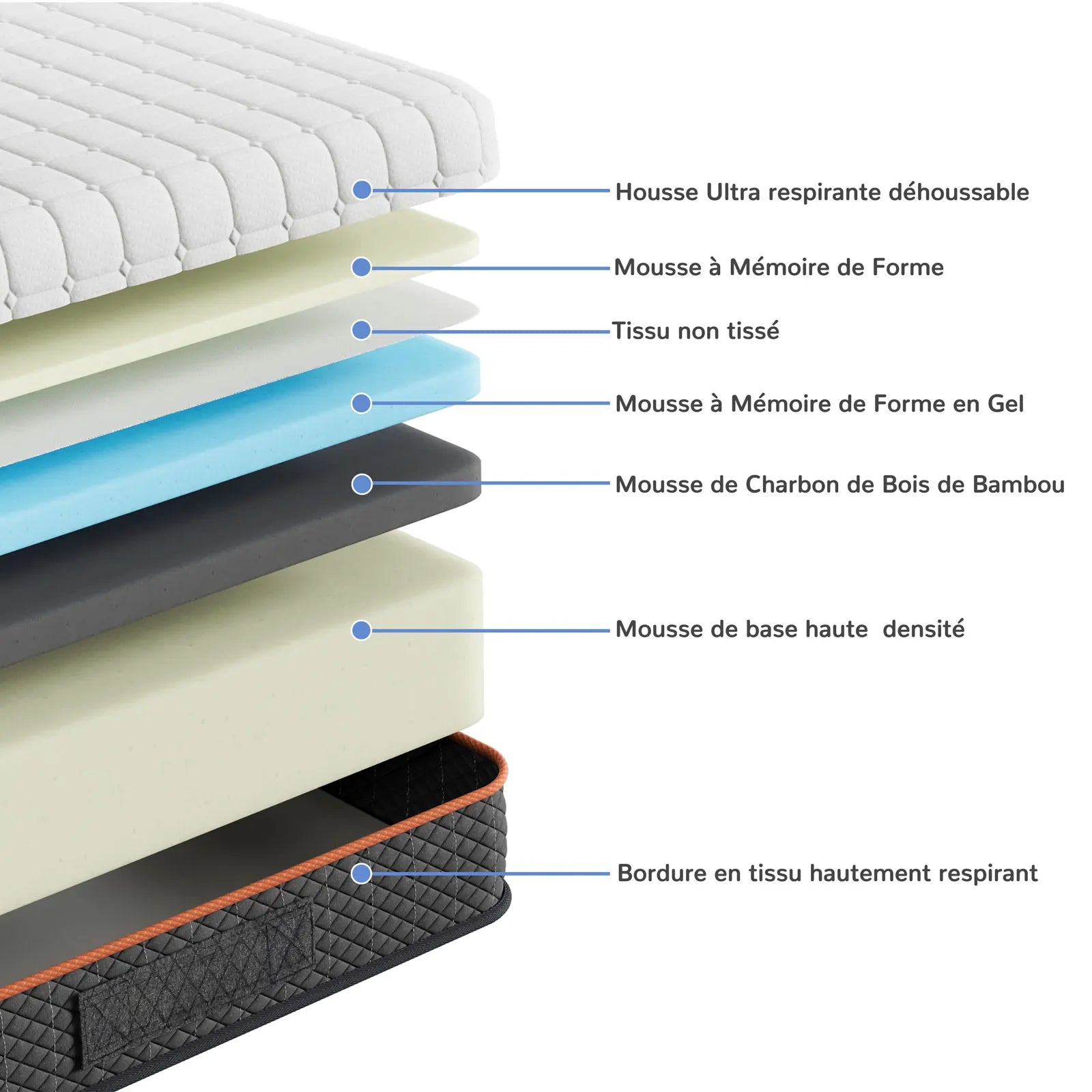 Vesgantti Schaumstoffmatratze, weiß, 16/18/26 cm Dicke, Gel-Memory-Schaum-Matratze, Zoned Support hält Sie gut ausgerichtet
