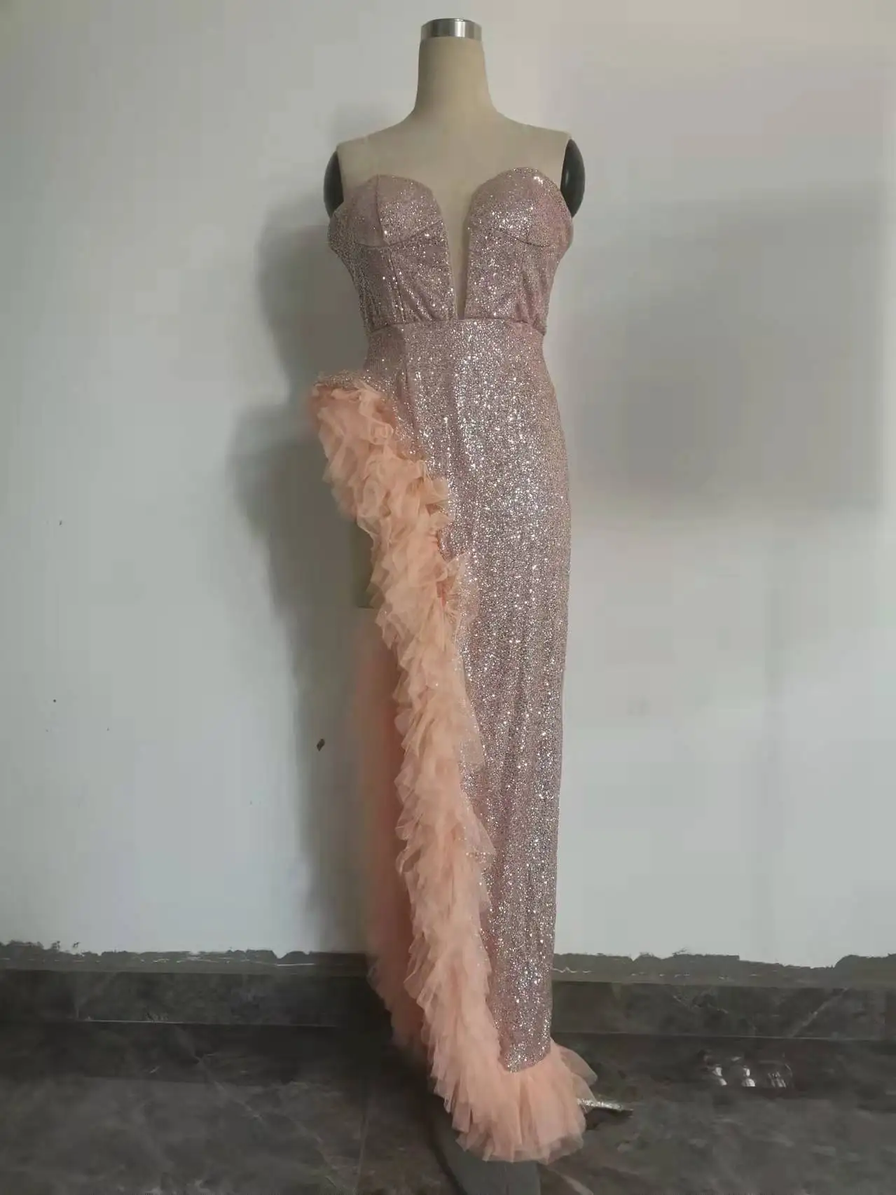 Vestidos Gala Prom Dresses Glitter Sequin Side Slit Sweetheart Mermaid Party Dress Vestidos