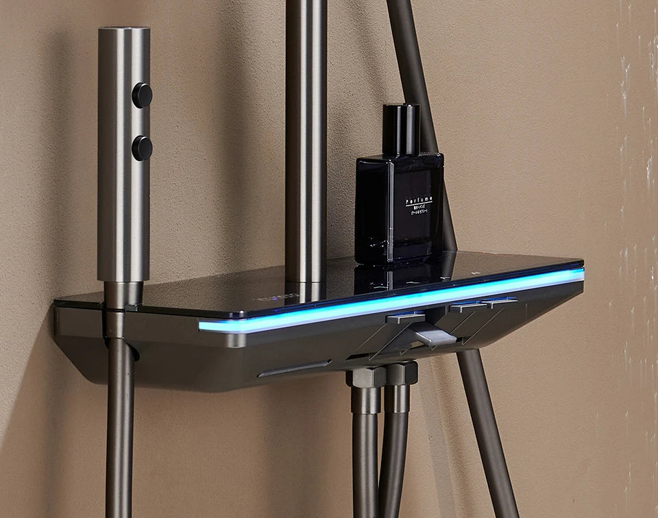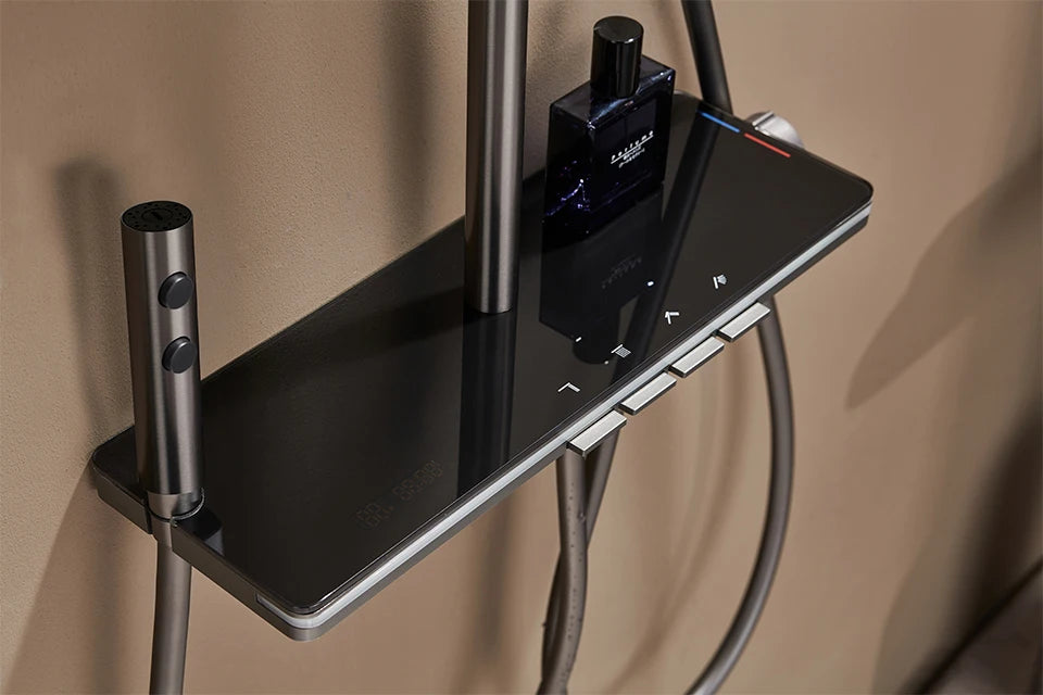 Shower system: Four-function thermostatic shower set,Grey/Gray shower set