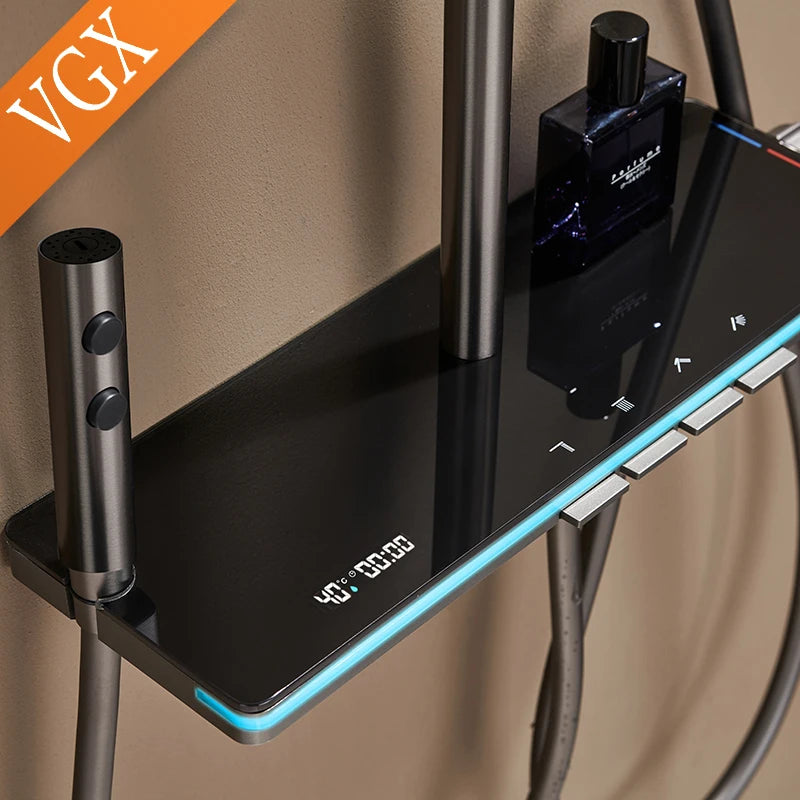 VGX LED Digital Shower System Modern Bathroom Temperature Display Shower Faucet Set Rainlfall Bathroom Mixer Bidet Shower Set