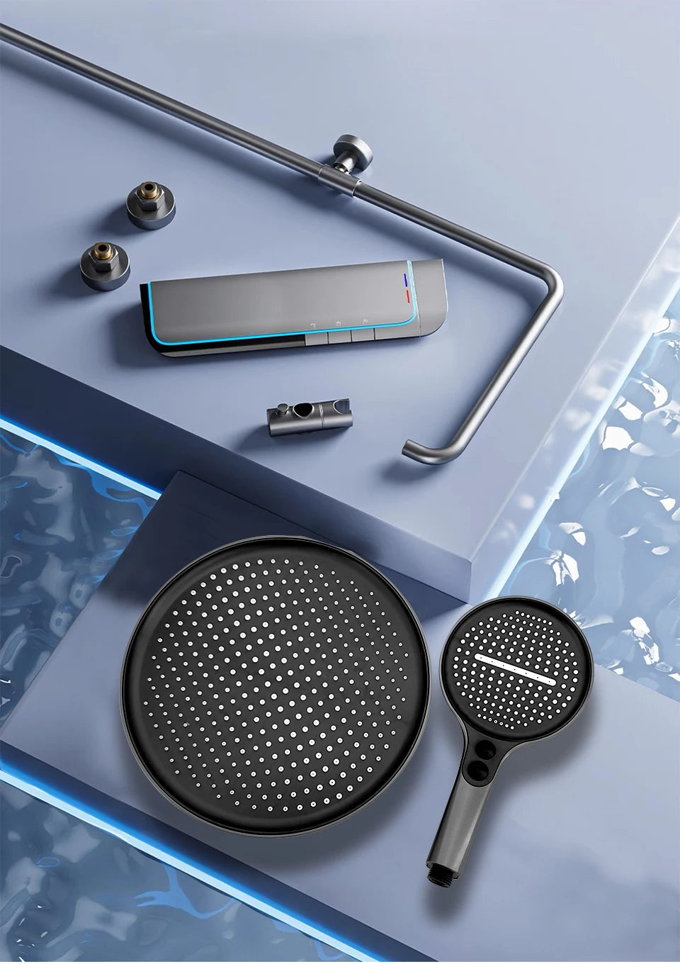 Shower system: Four-function thermostatic shower set,Grey/Gray shower set