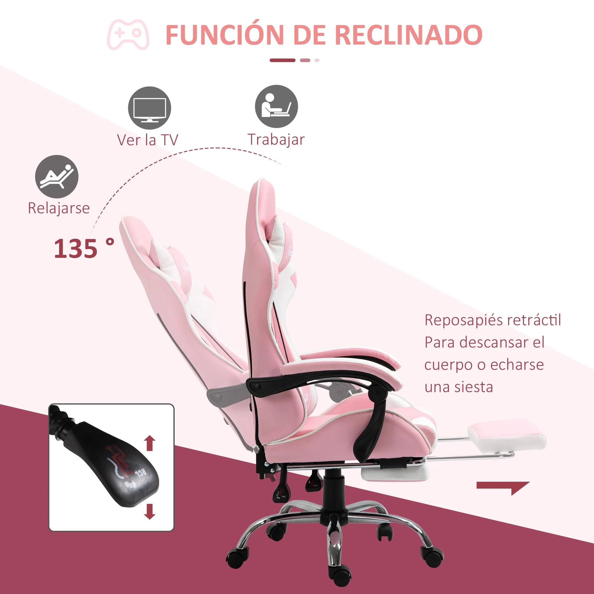Vinsetto Liegestuhl für Gaming, Kopfstütze, Fußstütze, 64 x 67 x 119–127 cm, Rosa