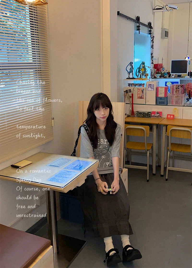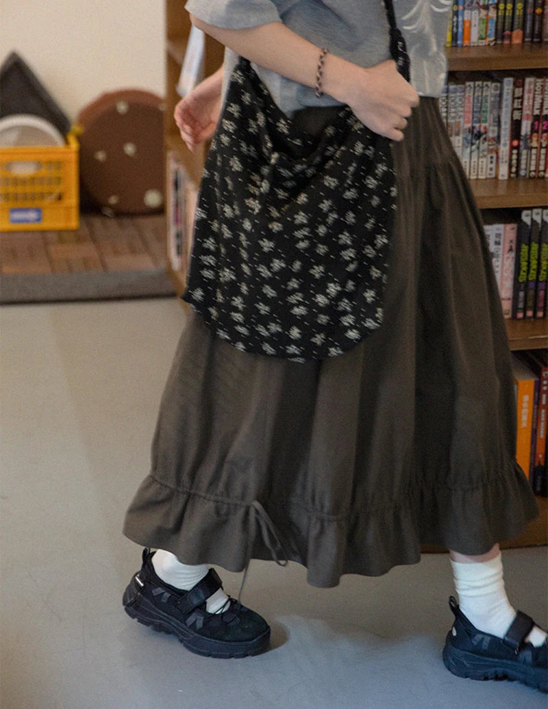 Vintage Black Midi Skirt Women Japanese Harajuku Drawstring Bud Skirts Summer Streetwear Korean Casual Design A Line Faldas New