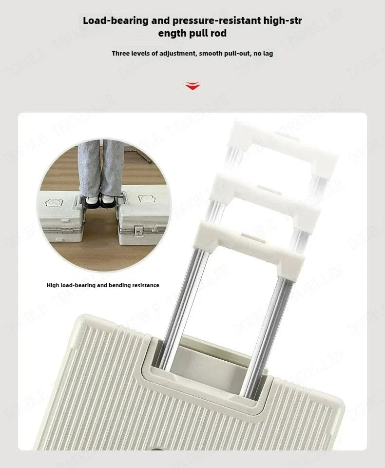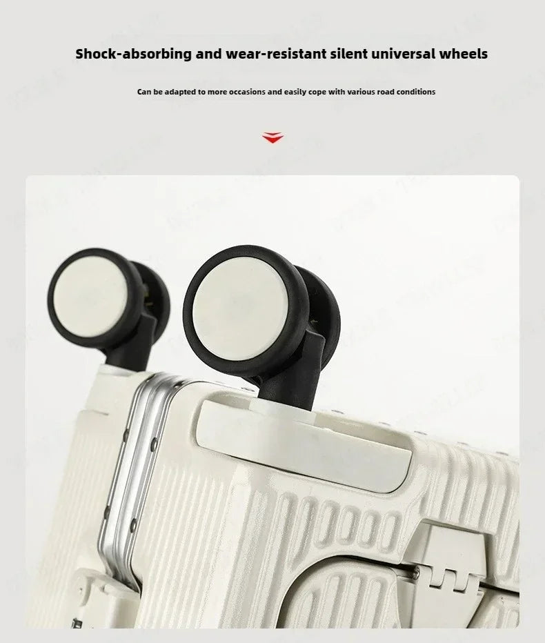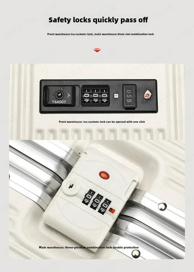 Vorne öffnender Rollgepäckkoffer mit großer Kapazität, Aluminiumrahmen, ABS + PC-Trolley, Koffer, USB-Lade-Boarding-Koffer