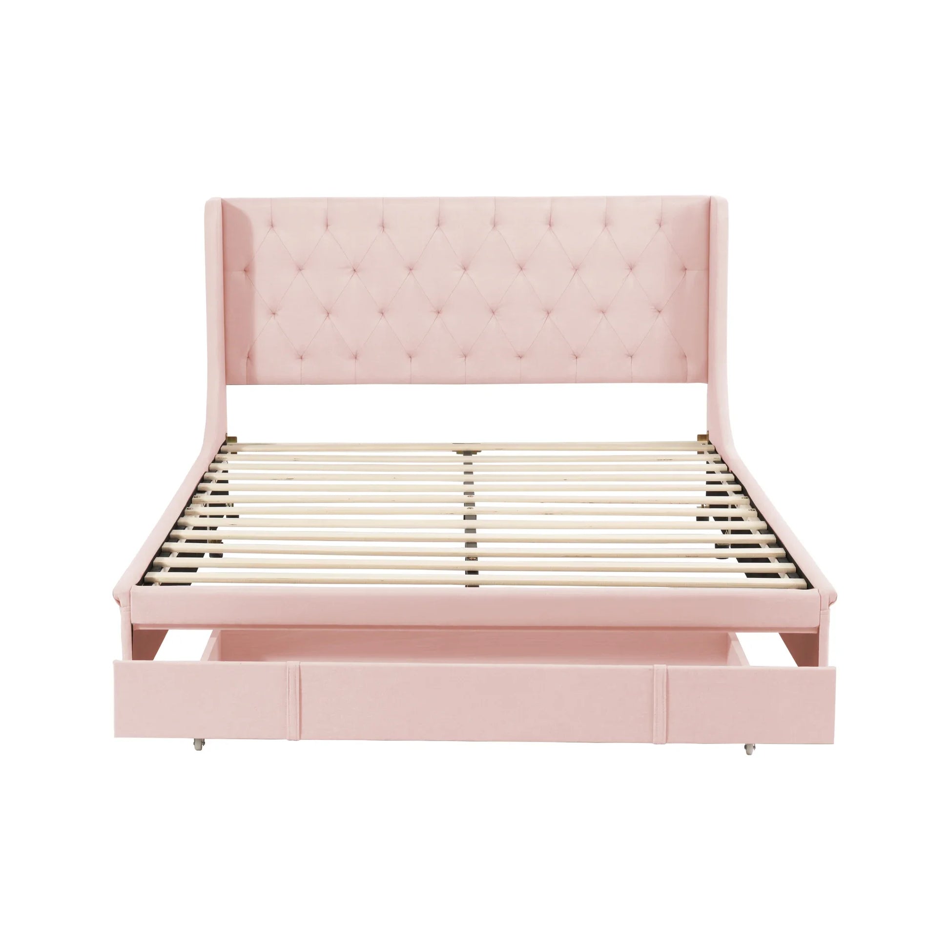 VSOGA gepolstertes Doppelbett 140 x 200 cm mit Lattenrost, Rückenlehne, großem Schubladen, für Erwachsene und Jugendliche