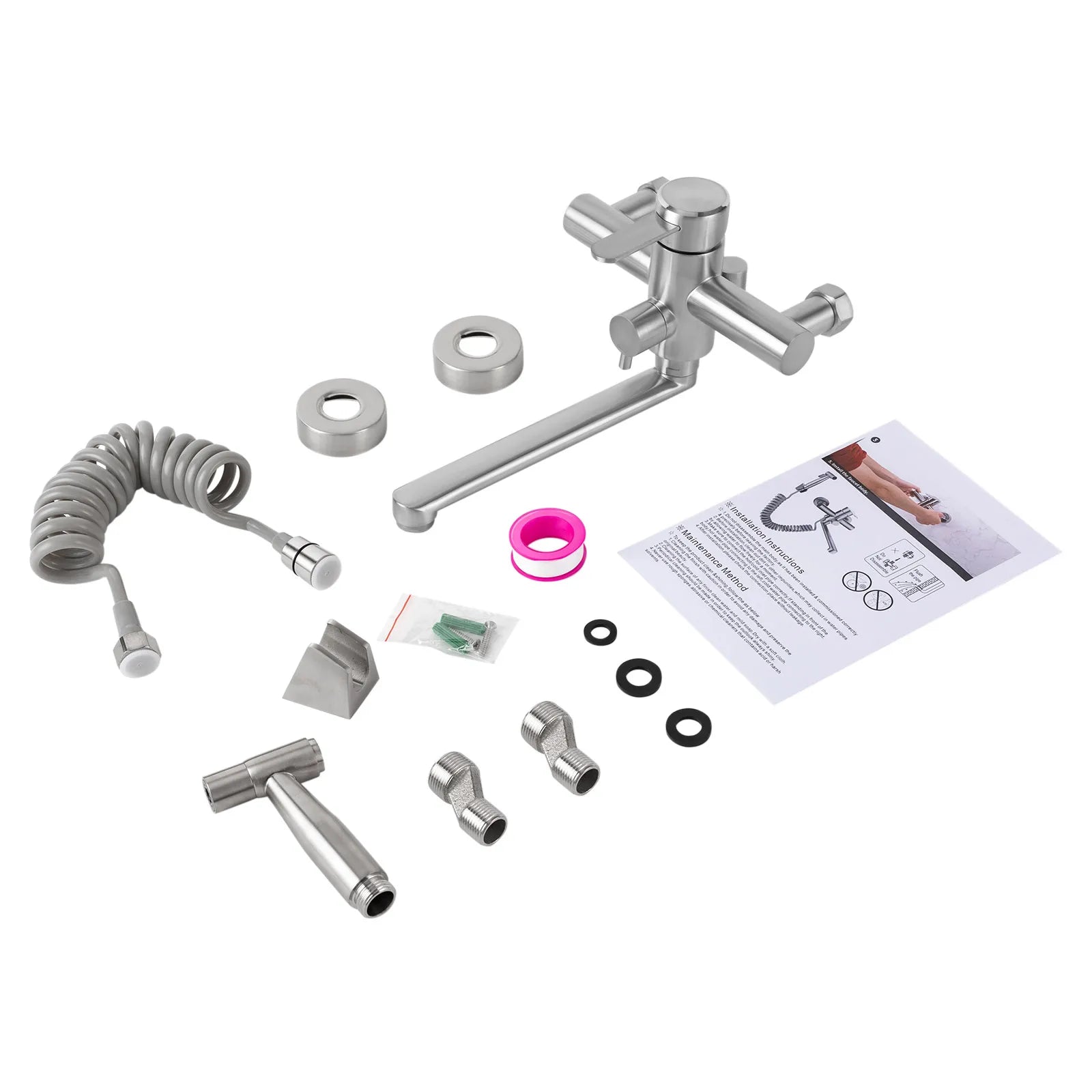 Wall-Mounted Kitchen Mixer Tap with Sprayer, 360° Swivel Stainless Steel Spout & Anti-Leak Design for Sink/Laundry, Black/Silver