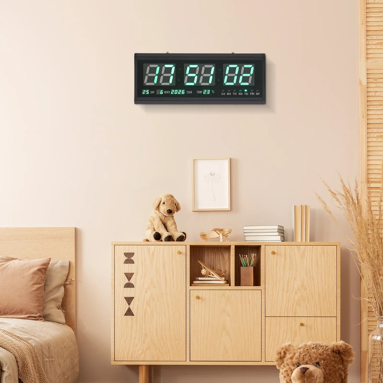 Wanduhr, Wanduhr mit Datumstemperatur, digitale LED-Wanduhr für Schlafzimmer, Esszimmer, Wohnzimmer, Eingänge, Büro