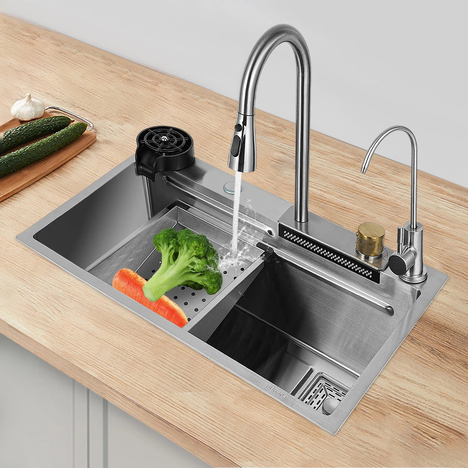 Wasserfall-Bar-Waschbecken, Edelstahl-Waschbecken-Set, integriertes Waschbecken mit abnehmbarem Wasserhahn für Badezimmer, Bauernhöfe, Hinterhof