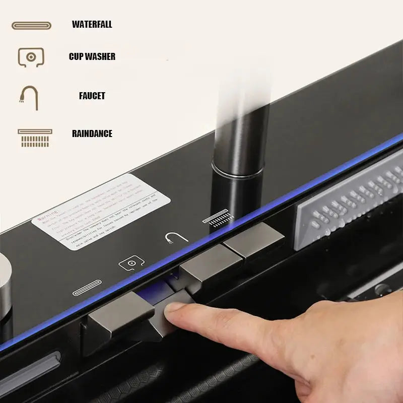 Wasserfall-Küchenspüle aus Edelstahl 304, großes Einzelschlitz-Wasserhahn-Set mit integrierter Digitalanzeige, Seifenspender, Tassenwascher