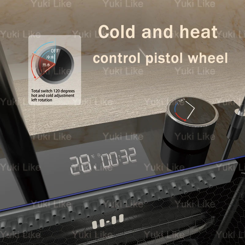 Wasserfall-Küchenspüle aus Edelstahl mit Digitalanzeige, extra große Einzelschüssel, multifunktionales Gemüsewaschbecken für den Haushalt