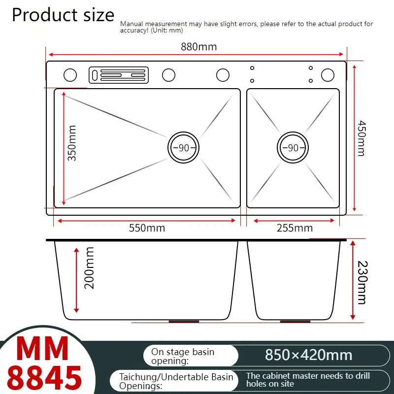 Waterfall Kitchen Sink Stainless Steel Multifunctional Undermount Washbasin Double Slot Dishwashing Sinks