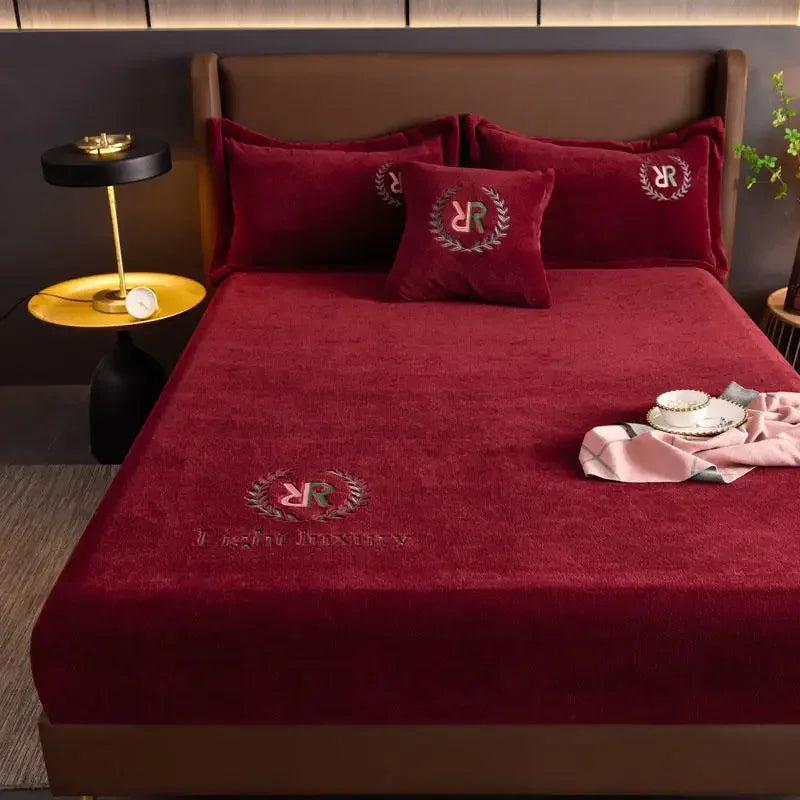 Winter Plush Elastic Fitted Sheet Couple Double Bedspread on The Bed Linen Mattress Pad Cover 90 150 180x200 Warm Deep Pocket