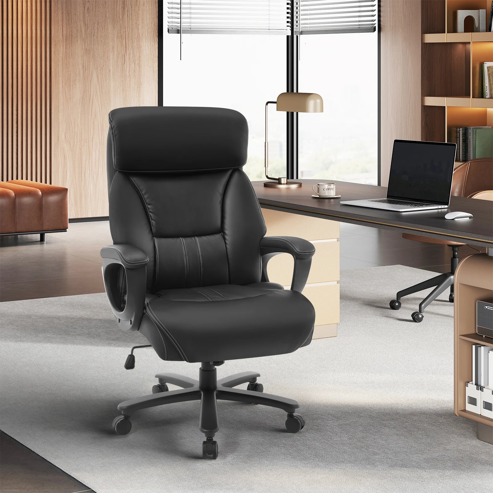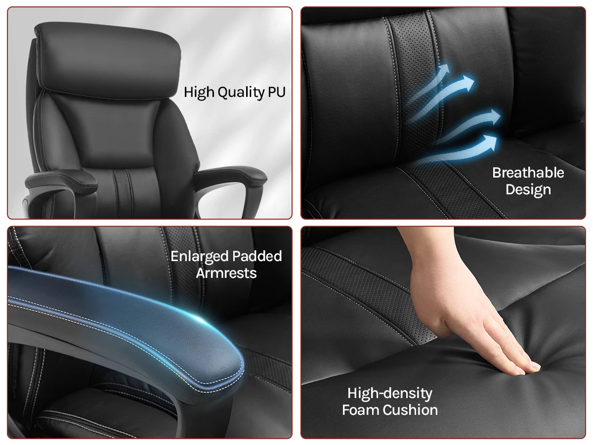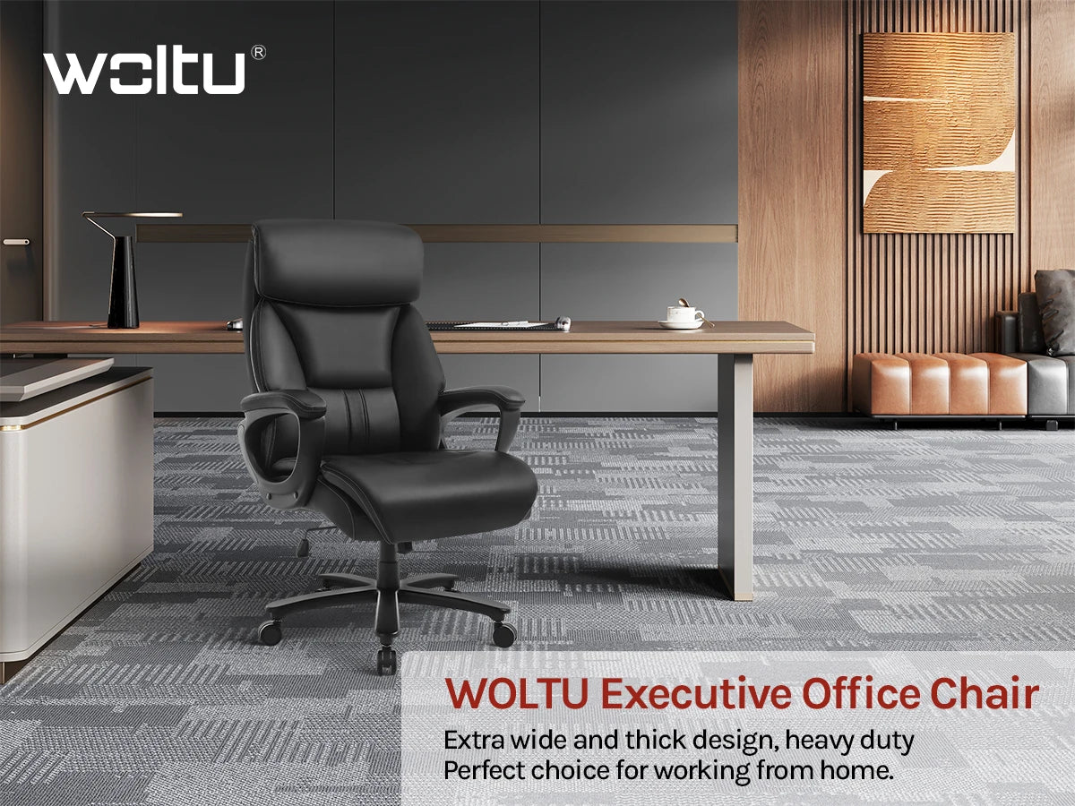 WOLTU Bürostuhl, ergonomischer Computertisch, großer Stuhl mit Kopfstütze, PU-Leder, Chefsessel für Büro, Spiel, Konferenzraum