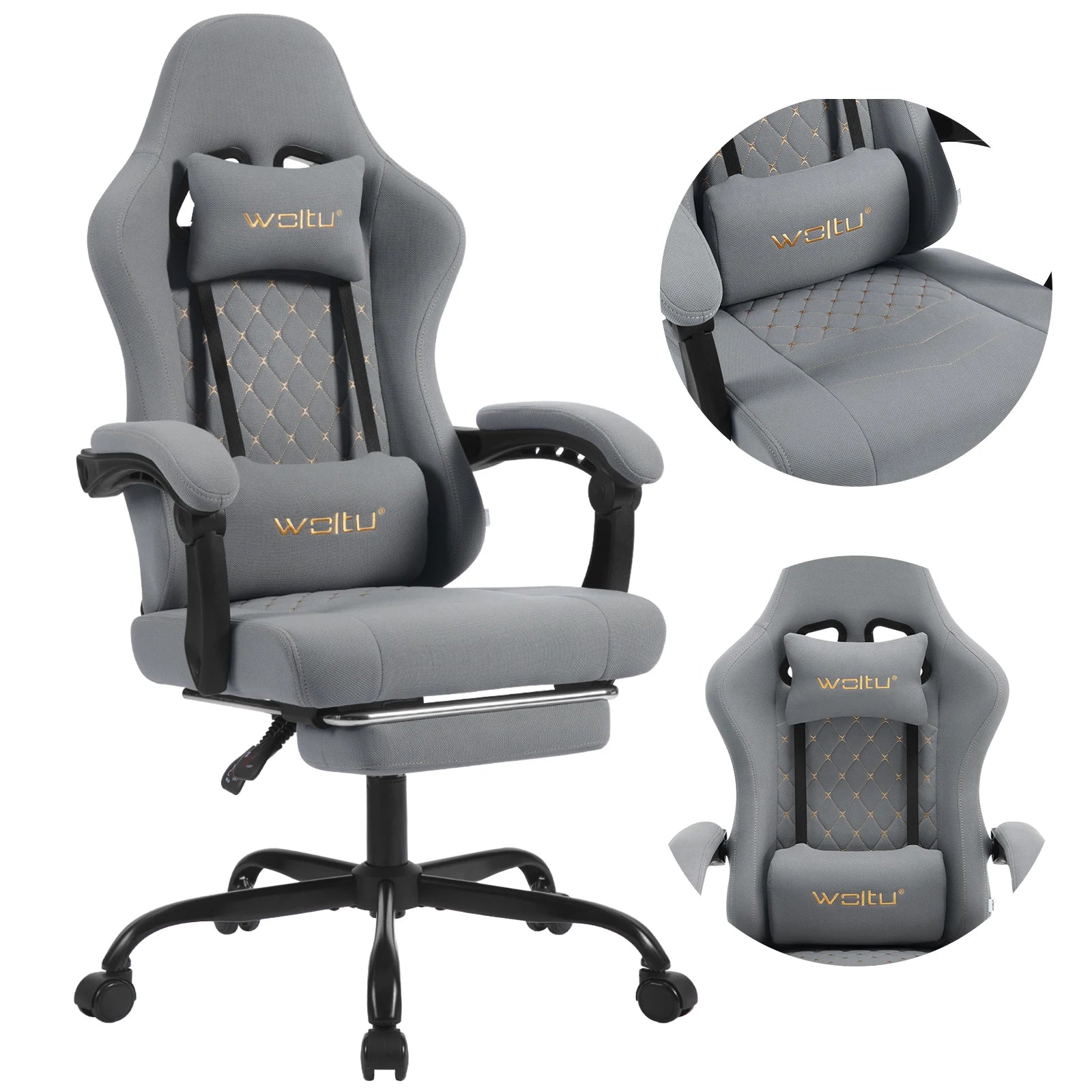 WOLTU Computer-Gamer-Stuhl, ergonomischer drehbarer PC-Gaming-Stuhl mit Taschenfederkissen, Massagefunktion für Büro und Zuhause