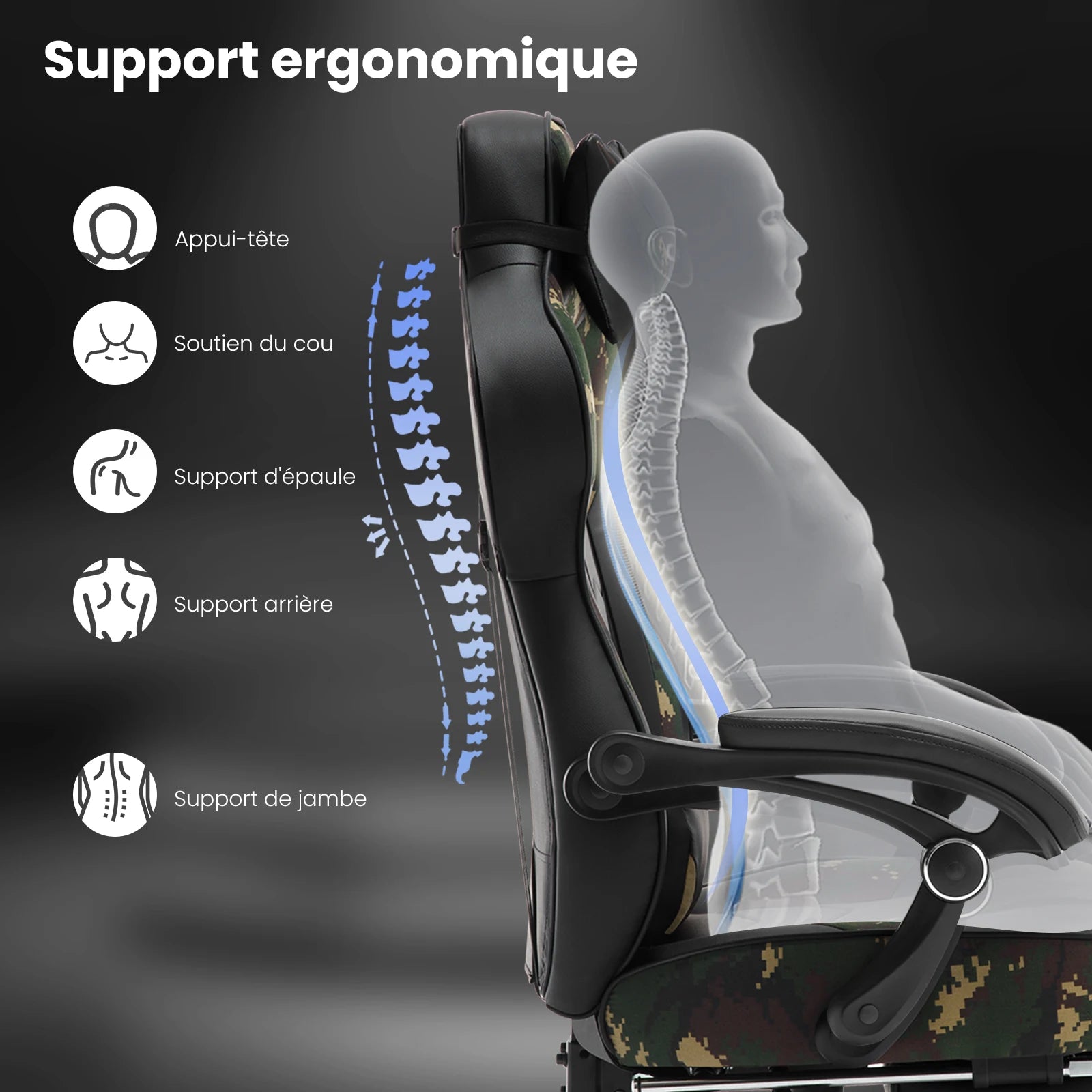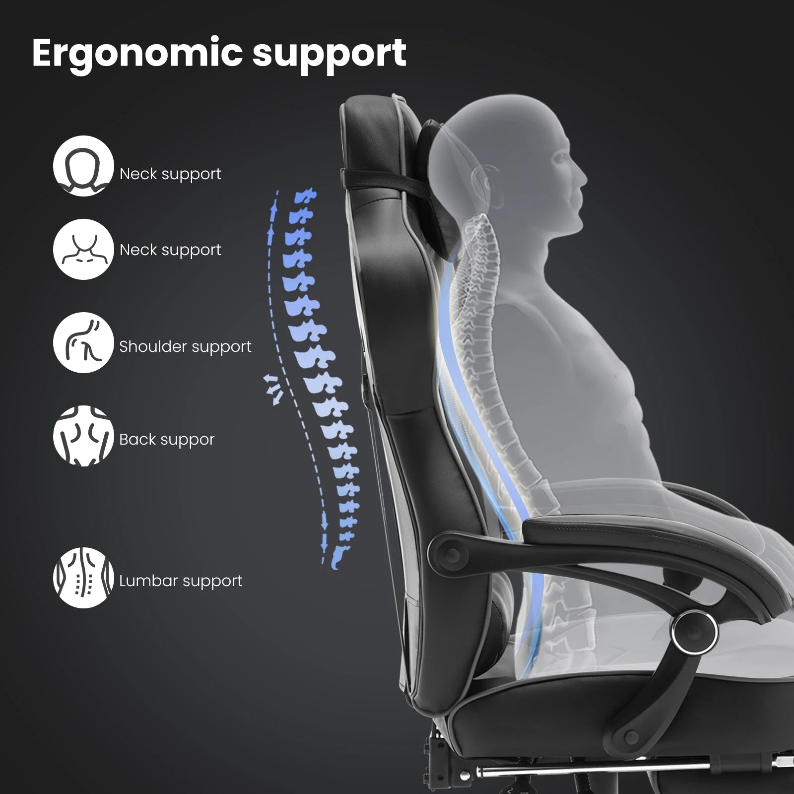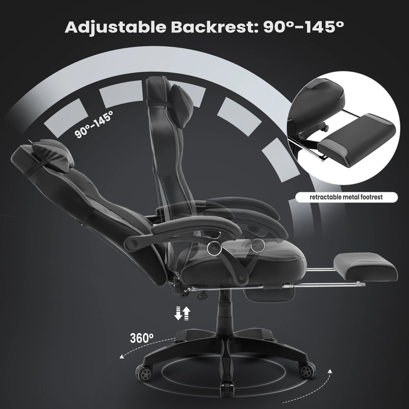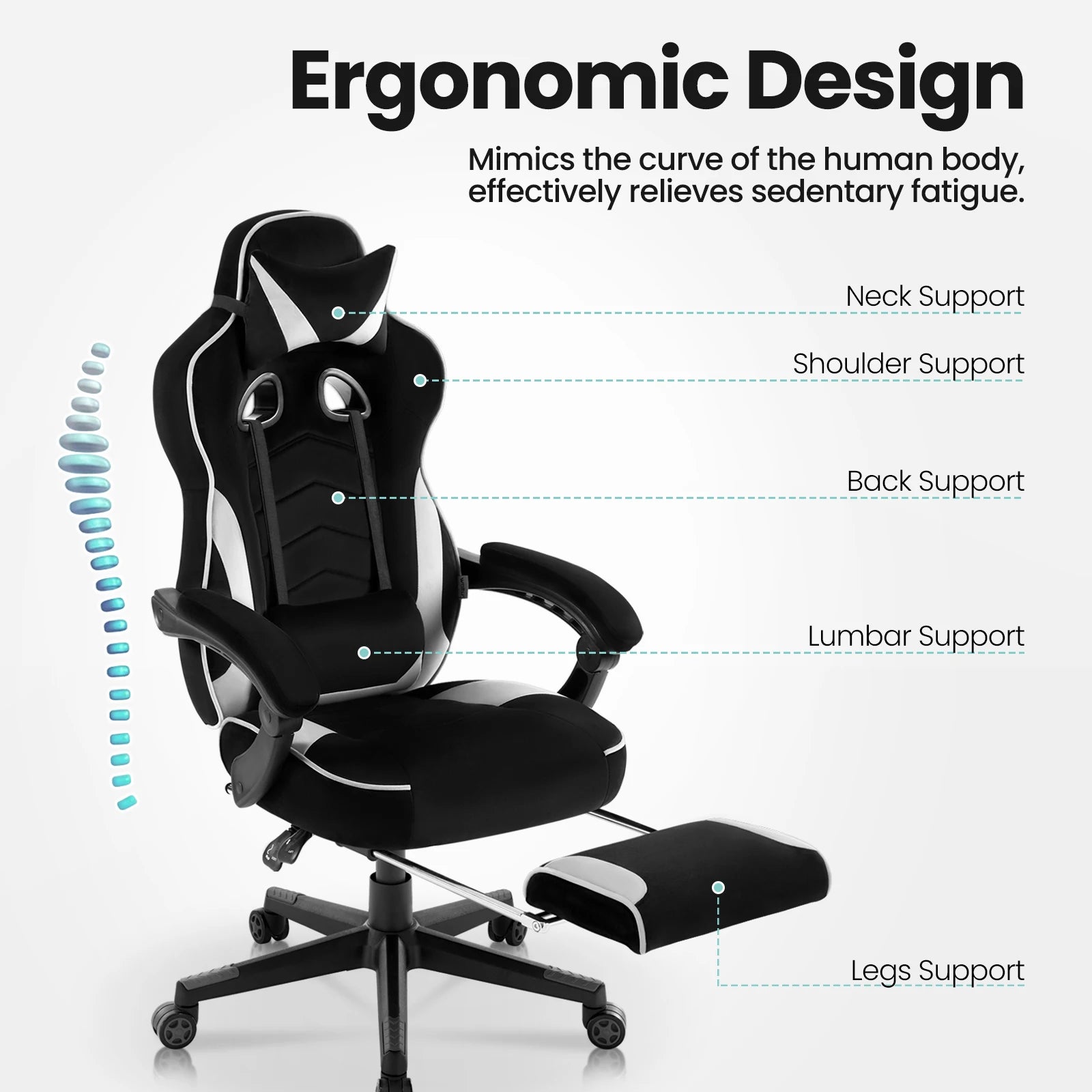WOLTU Drehbarer Gaming-Rennstuhl, Schreibtisch, Büro, Computerstuhl, Sportsitz mit Kopfstütze, Lendenkissen, Fußstütze, Gamer-Stuhl