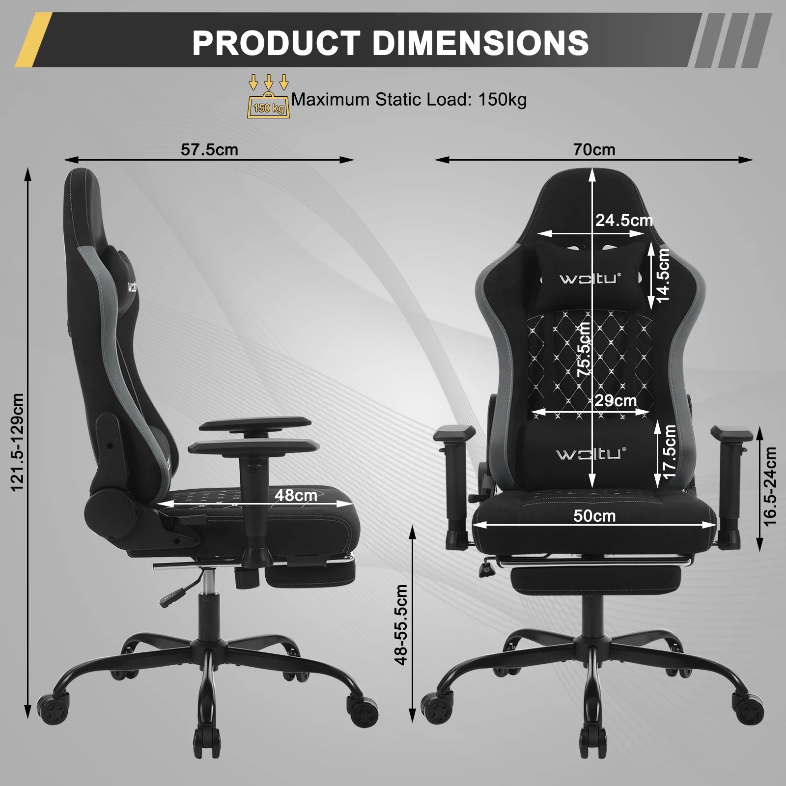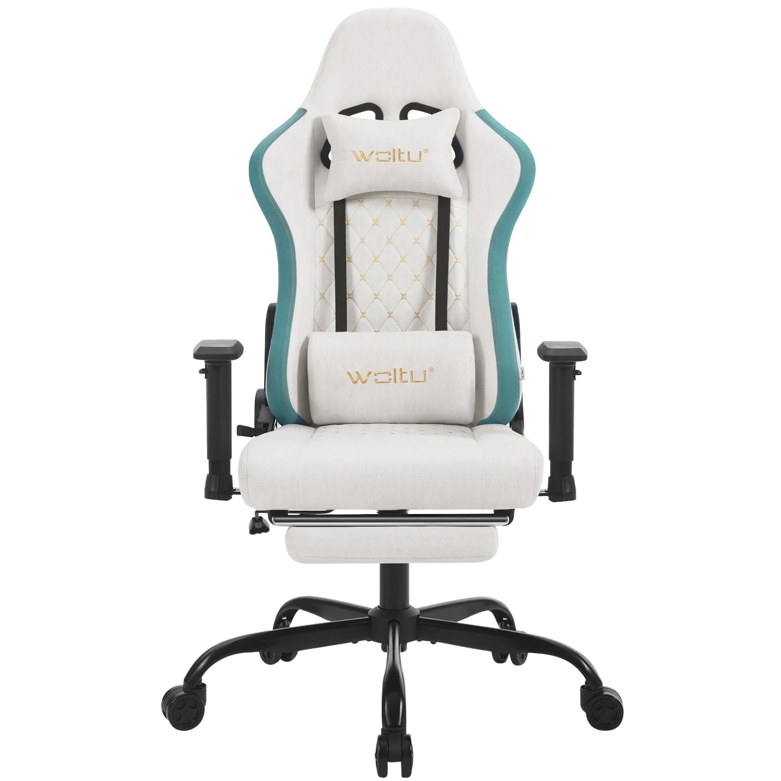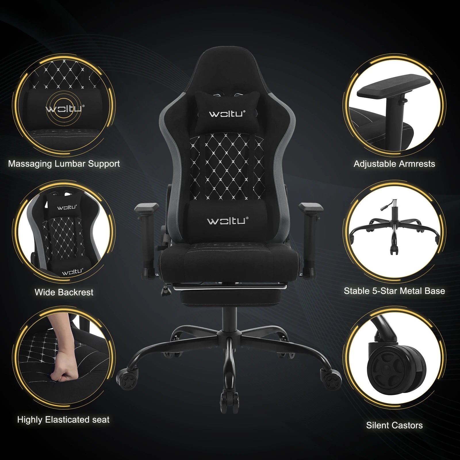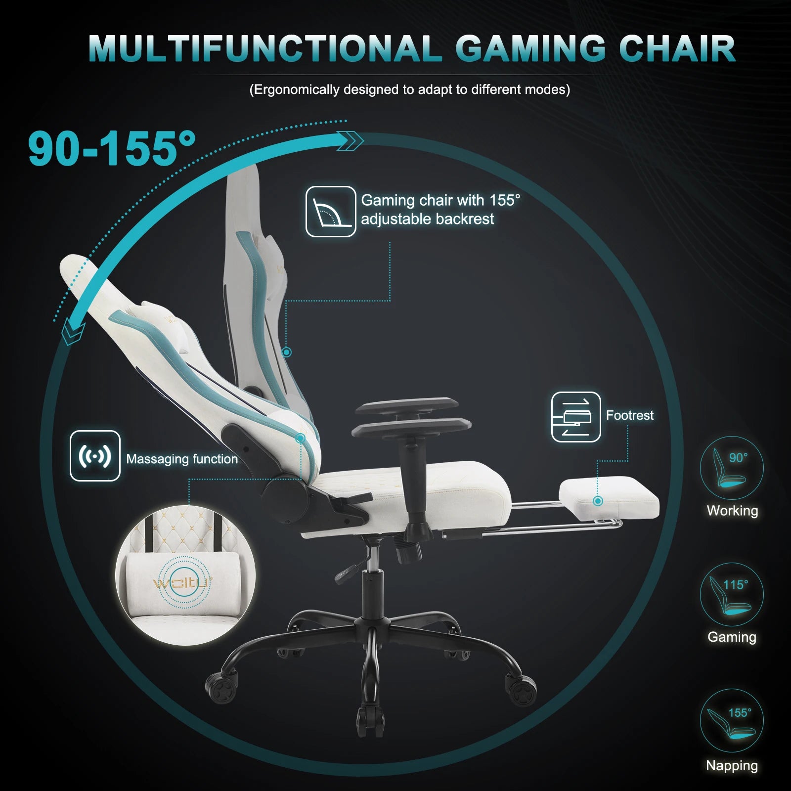 WOLTU Drehbarer Massage-Computer-Gaming-Stuhl, ergonomischer Racing-Gamer-Bürostuhl mit Rollen, Kopfstütze, Fußstütze, Lendenkissen