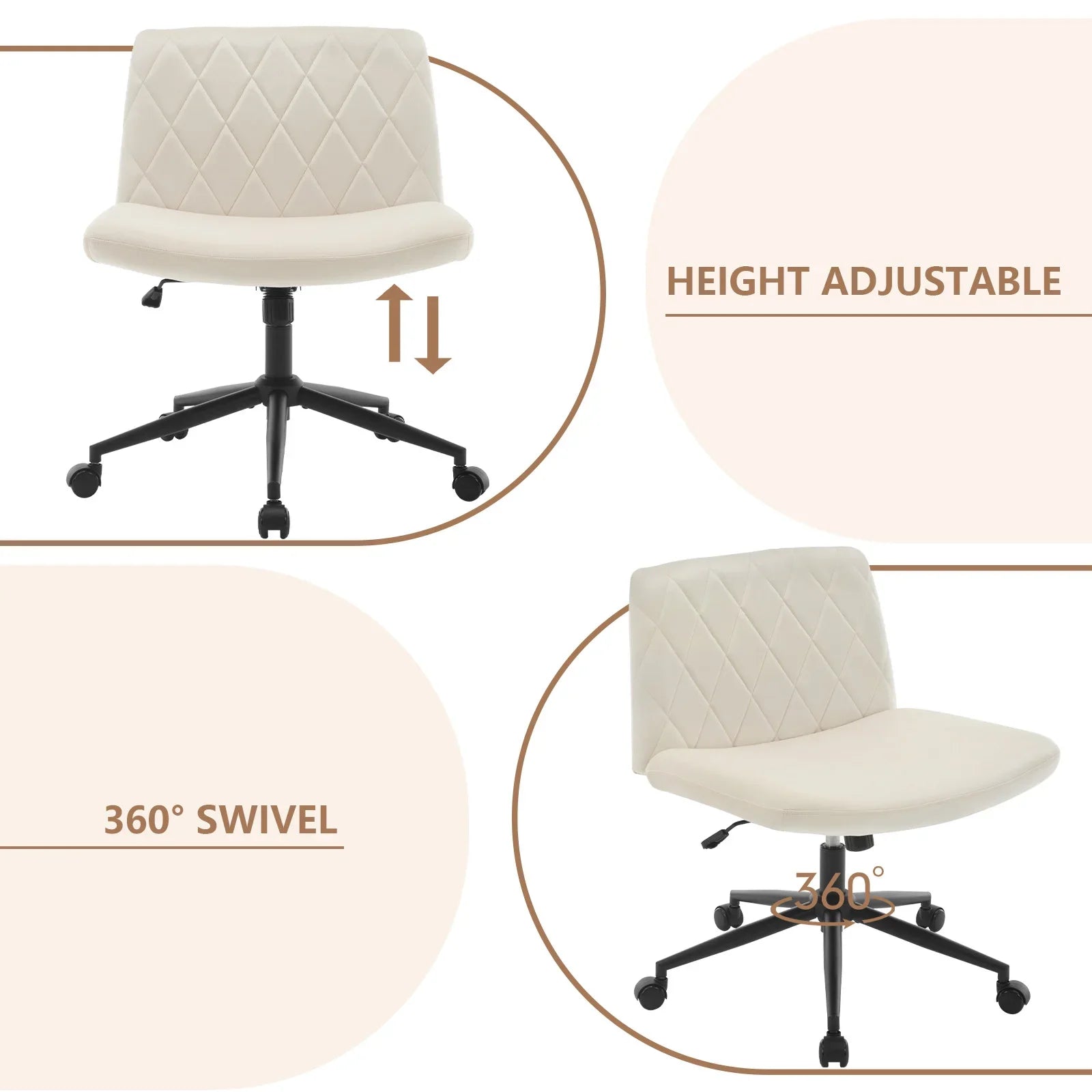 WOLTU Ergonomischer Bürostuhl aus Samt, drehbarer Rollenstuhl, Rückenlehne, gekreuzte Beine, neigbarer, höhenverstellbarer Schminkstuhl
