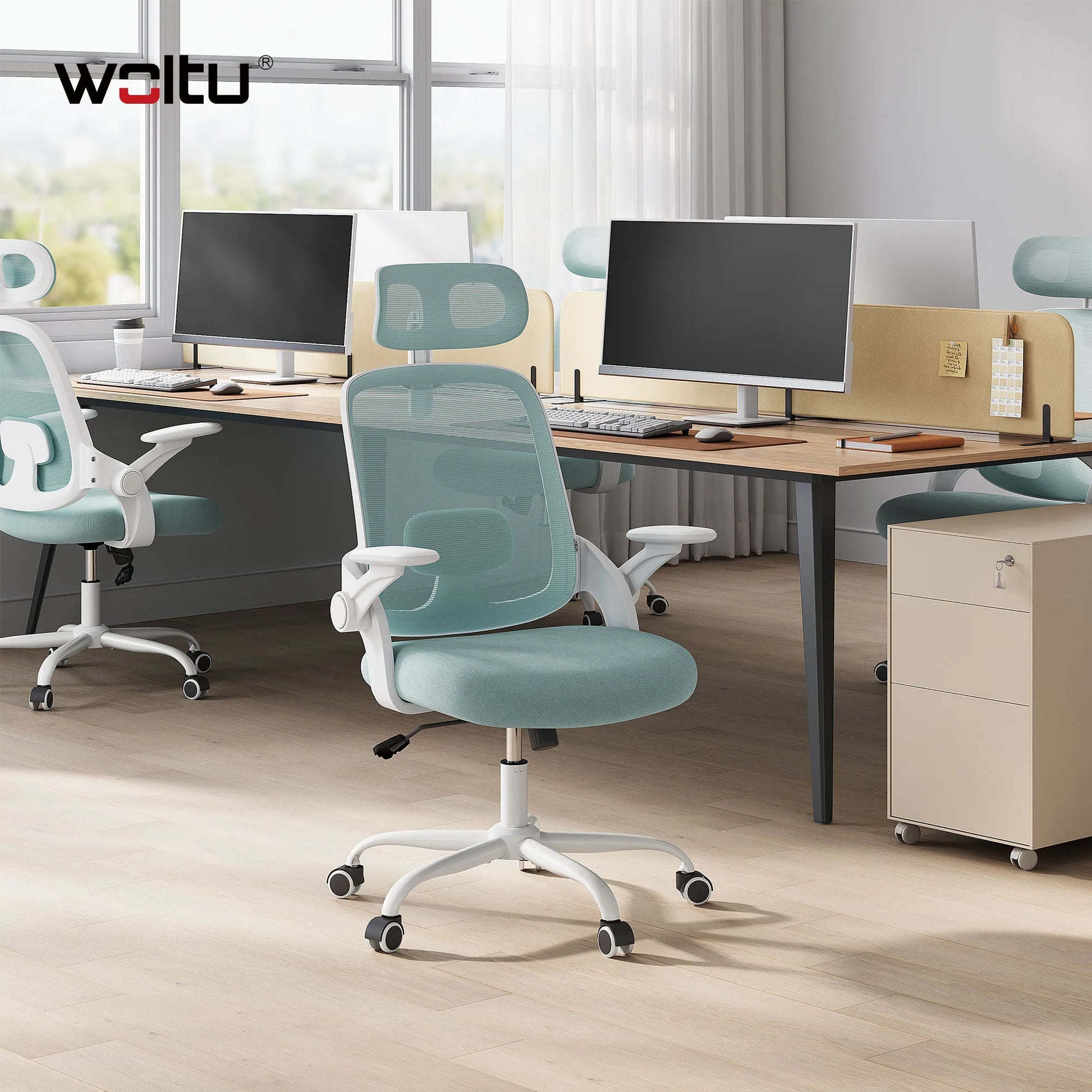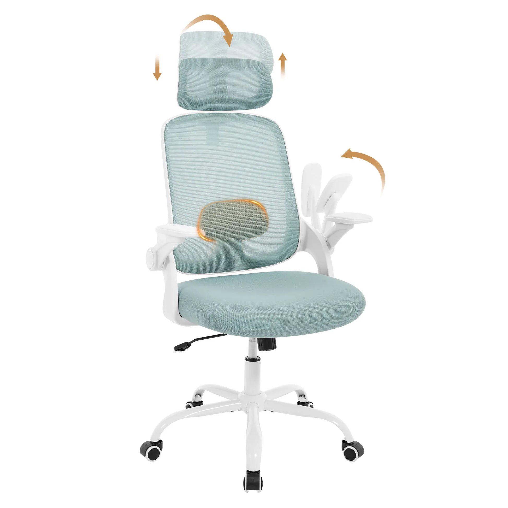 WOLTU Ergonomischer Netz-Bürostuhl, anhebbarer Gaming-Stuhl mit Kopfstütze, verstellbare Lordosenstütze, drehbarer Computerstuhl mit hoher Rückenlehne