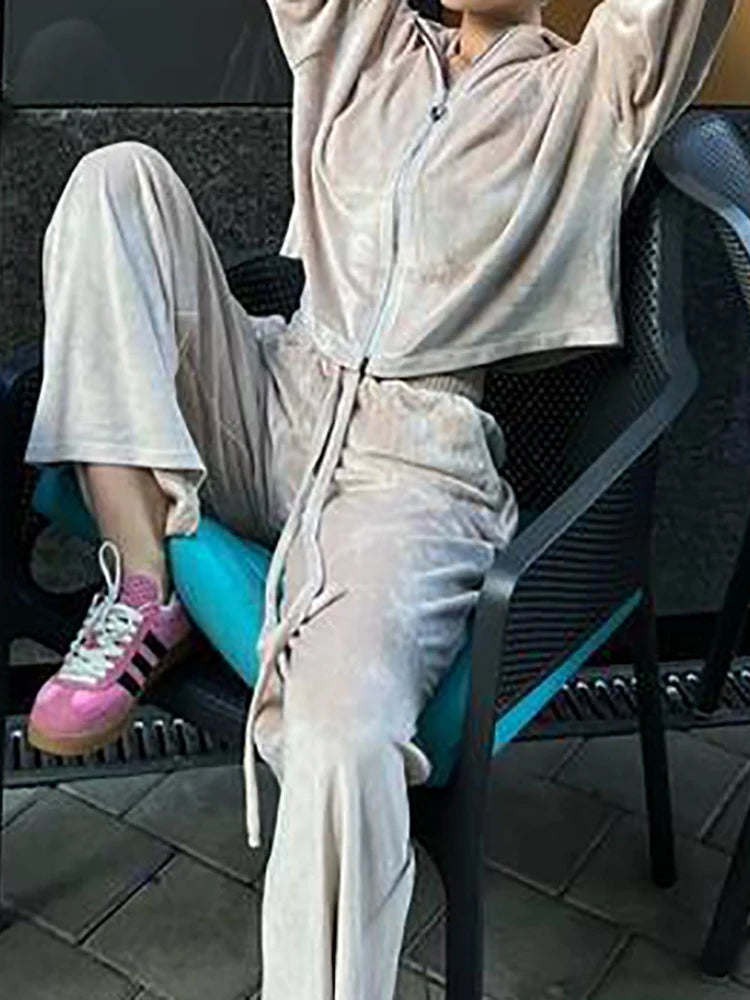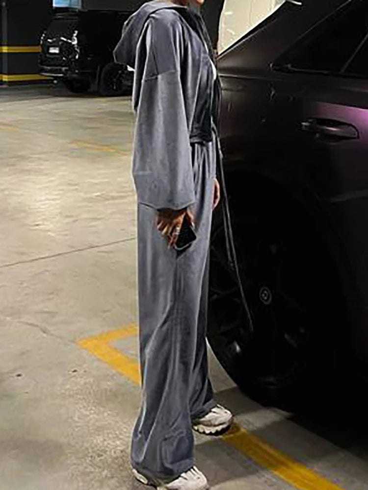 Women Autumn Hooded Coat Two Pieces Sets, Solid Patchwork Wide Leg Pants Chic Outfit, New Long Sleeve Casual Simple Ladies Suits