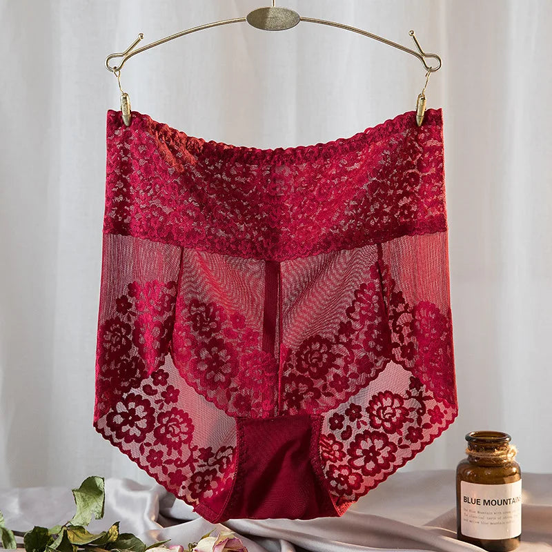 Women Lace High Waist Panties Sexy Mesh Girdle Waist Underwear Quality Plus Size Butt Lifter Knickers Tummy Slim Control Briefs