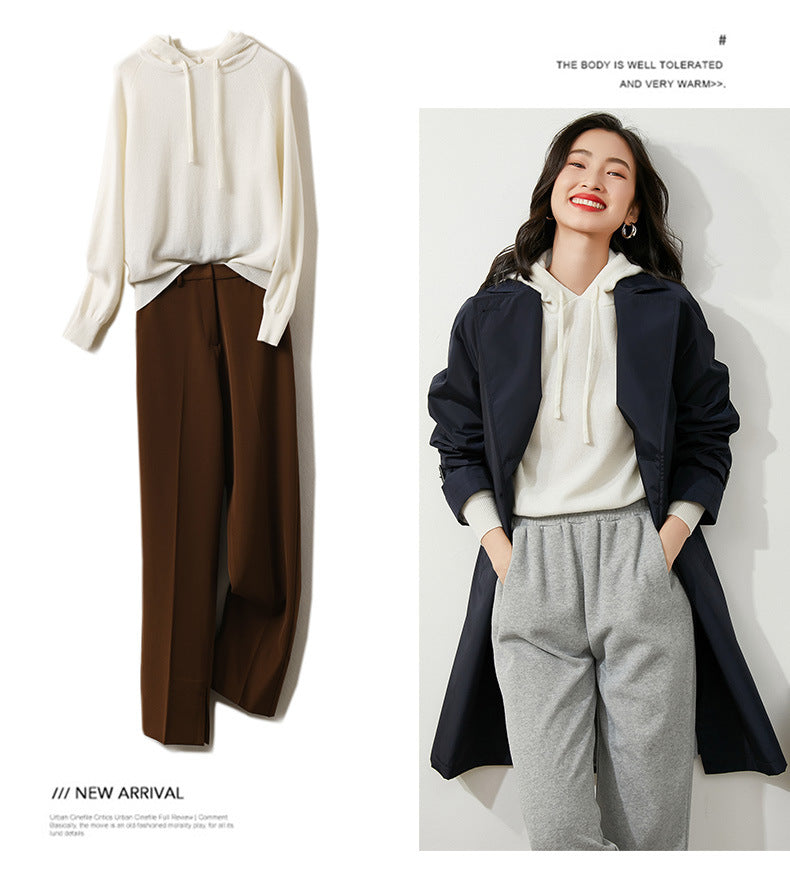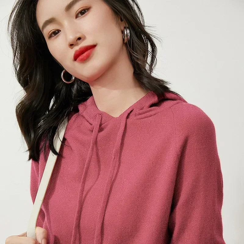 Women's Autumn and Winter New Casual Hoodies Sport Loose Hooded Knitted Hoodie Pullover Sweater