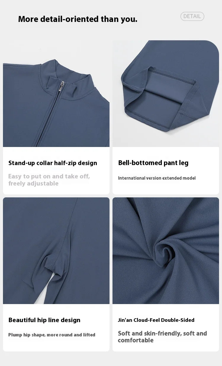 Women's One-piece Yoga Jumpsuit Long Sleeve Zipper Slim Fit Sports Outfit Flare Tights Quick-drying Hip Lift Gym Fitness Clothes