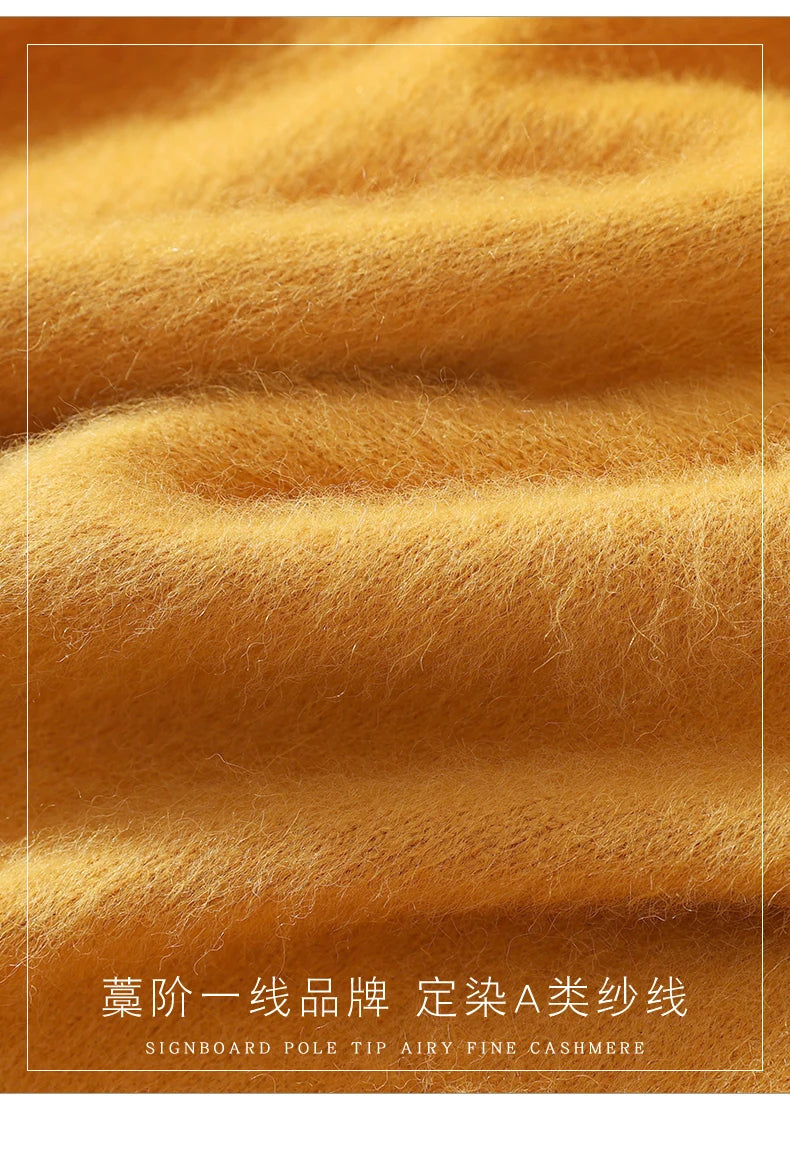 Women's Round-neck Mink Cashmere Sweater Soft Pullover Jumper Comfortable Knitted Top for Autumn Winter Pure Mink Material