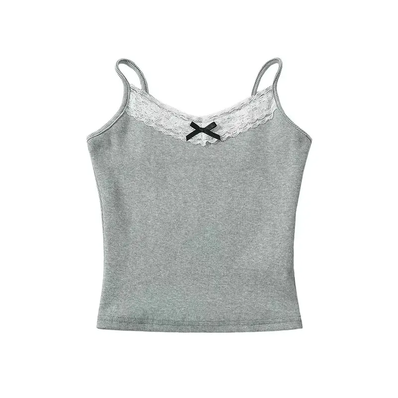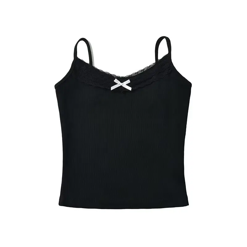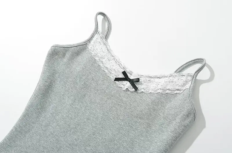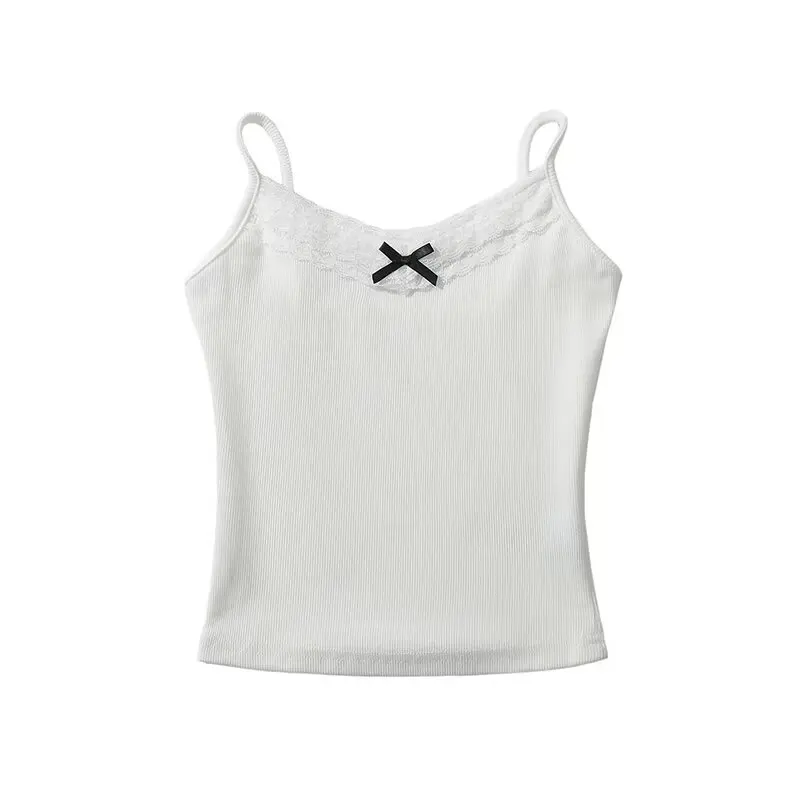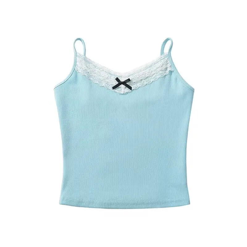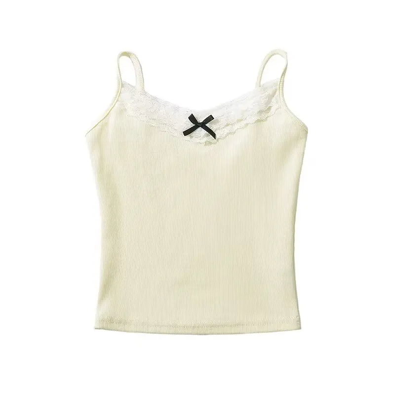 Women Summer New Fashion Lace Bow Tank Tops Vintage Sleeveless Backless Slim Casual Female Camis Chic Tops