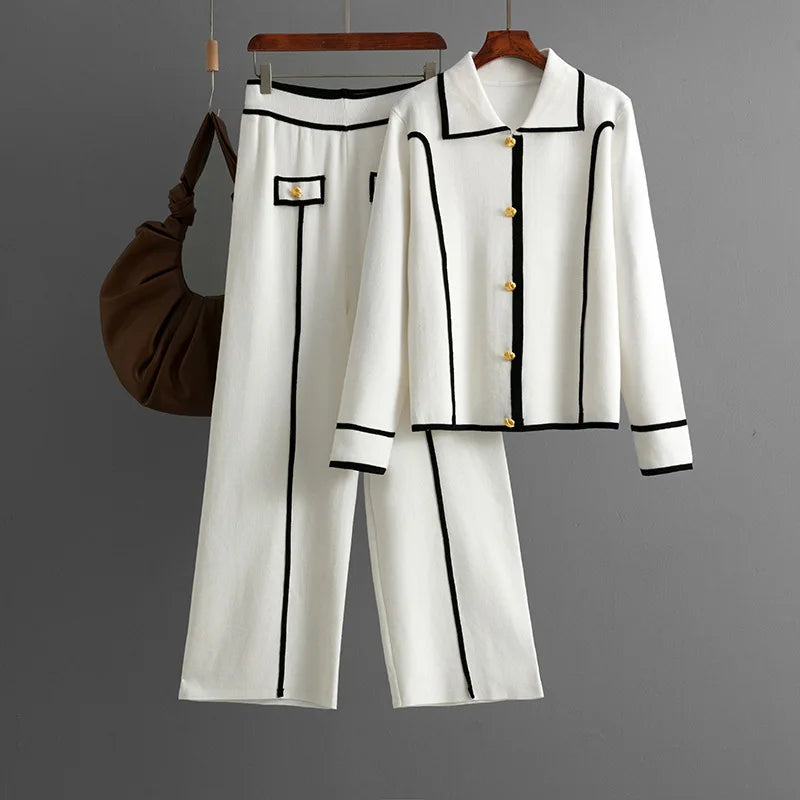 Women Sweater 2 Piece Suit Pullover Knitted Wide Leg Pants Muslim Sets Knitwear Single Breasted 2025 Outfits Autumn Winter