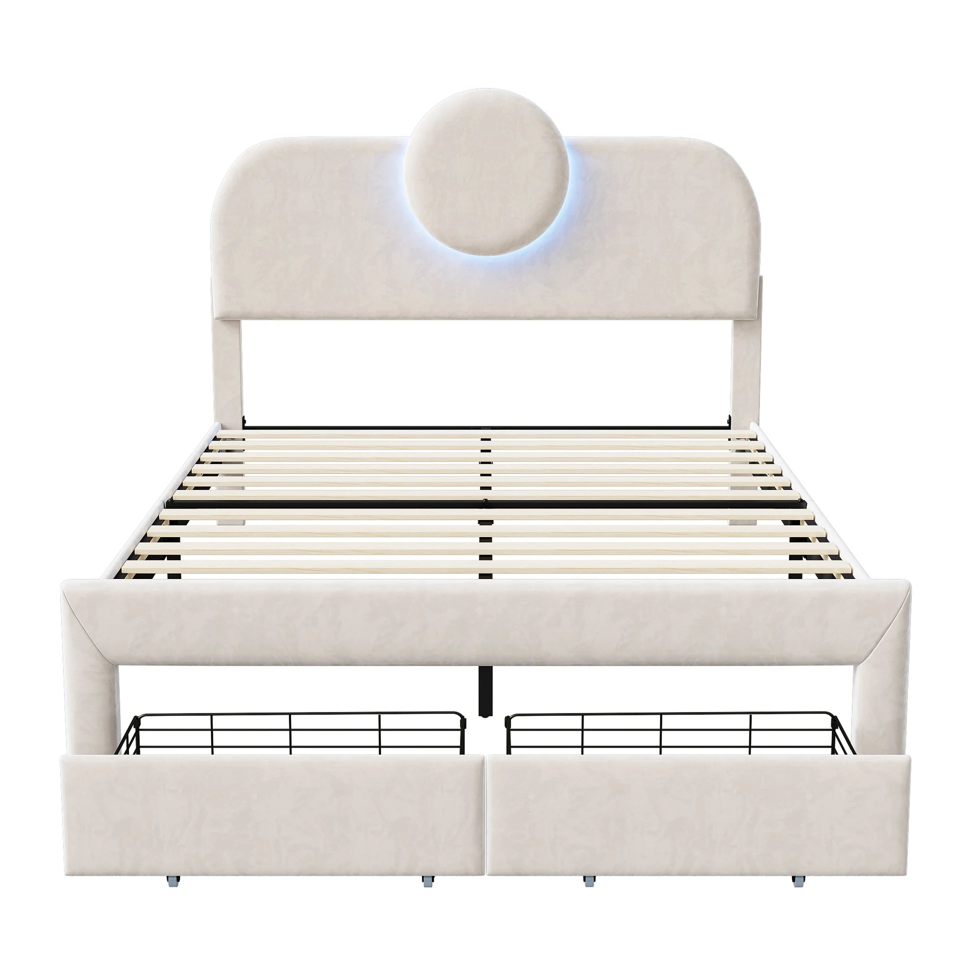 WoodenAura Gepolstertes Doppelbett, 140 x 200 cm mit LED, gepolstertes Bettgestell mit verstellbarem Kopfteil und Lattenrost